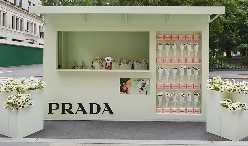為了推廣 Paradoxe Virtual Flower 香水,普拉達(dá)精心設(shè)計(jì)了備受矚目的時(shí)刻,注重細(xì)節(jié)與設(shè)計(jì),沉浸式的氣味體驗(yàn)室,充滿香水氣泡,精心策劃的花市。