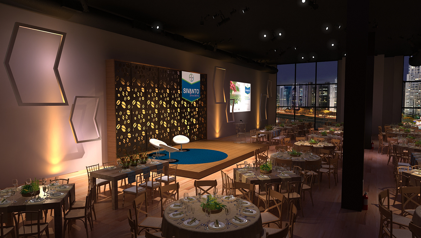 Sivanto在這次的宴會廳設(shè)計上選用了圍桌的形式,且在圍桌的設(shè)計上也做了精心的布局,有長條桌、圓桌、方桌幾種不同的形態(tài)呈現(xiàn)。前臺和舞臺部分的設(shè)計金屬感更重點(diǎn),增加了整個場地的格調(diào)和層次感,使得整個會場看著像是餐廳而又像是舞廳的感覺,打破了常規(guī)的商務(wù)化或者是娛樂輕浮風(fēng)。