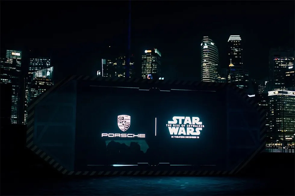 作為史無(wú)前例的合作的一部分,活動(dòng)借以一艘奇幻星艦支持即將上映的《星球大戰(zhàn)》電影,即天行者傳奇的最后一集。摩爾與盧卡斯影業(yè)副執(zhí)行創(chuàng)意總監(jiān) Doug Chiang 解釋了設(shè)計(jì)過(guò)程并展示了航天器的設(shè)計(jì)草圖,突出了保時(shí)捷和星球大戰(zhàn)的DNA結(jié)合。