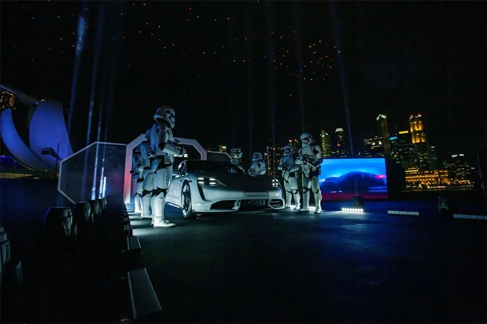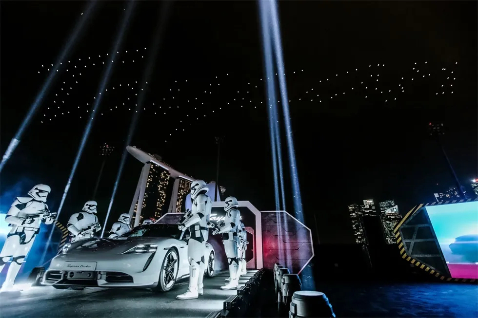 借助保時(shí)捷和《星球大戰(zhàn):天行者的崛起》的全球合作伙伴關(guān)系,活動(dòng)構(gòu)思了一個(gè)“太空港”,在新加坡隆重推出了首款全電動(dòng)跑車(chē)Taycan。一場(chǎng)由英特爾策劃執(zhí)行的壯觀的無(wú)人機(jī)秀和現(xiàn)場(chǎng)的互動(dòng)展覽為生活帶來(lái)了“靈魂,電氣化”的主題,突出了Taycan與保時(shí)捷品牌的傳承。