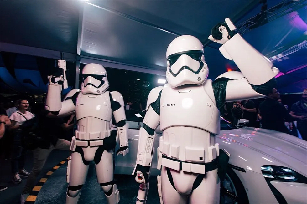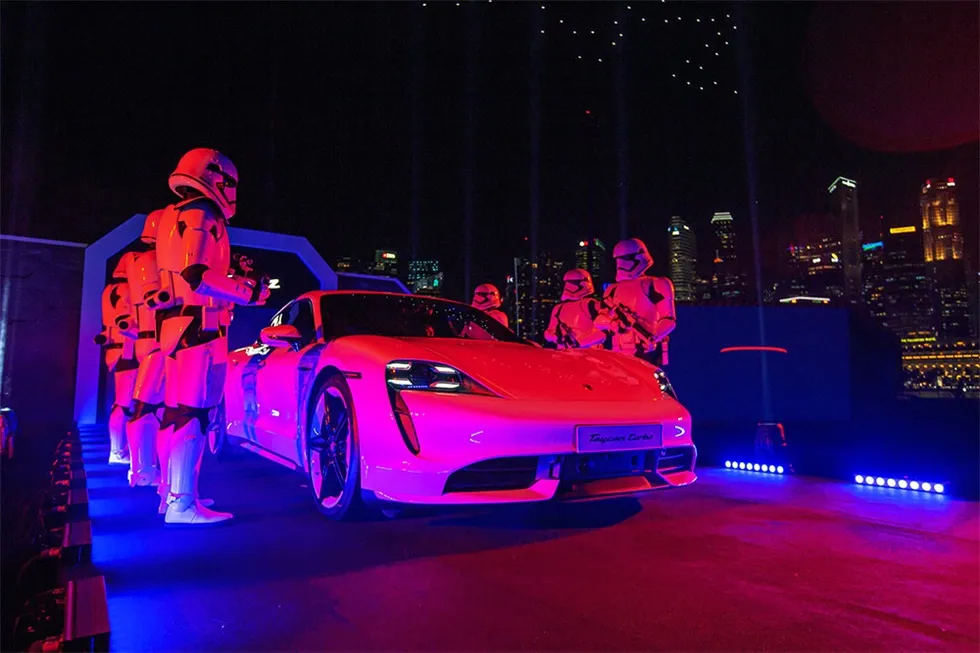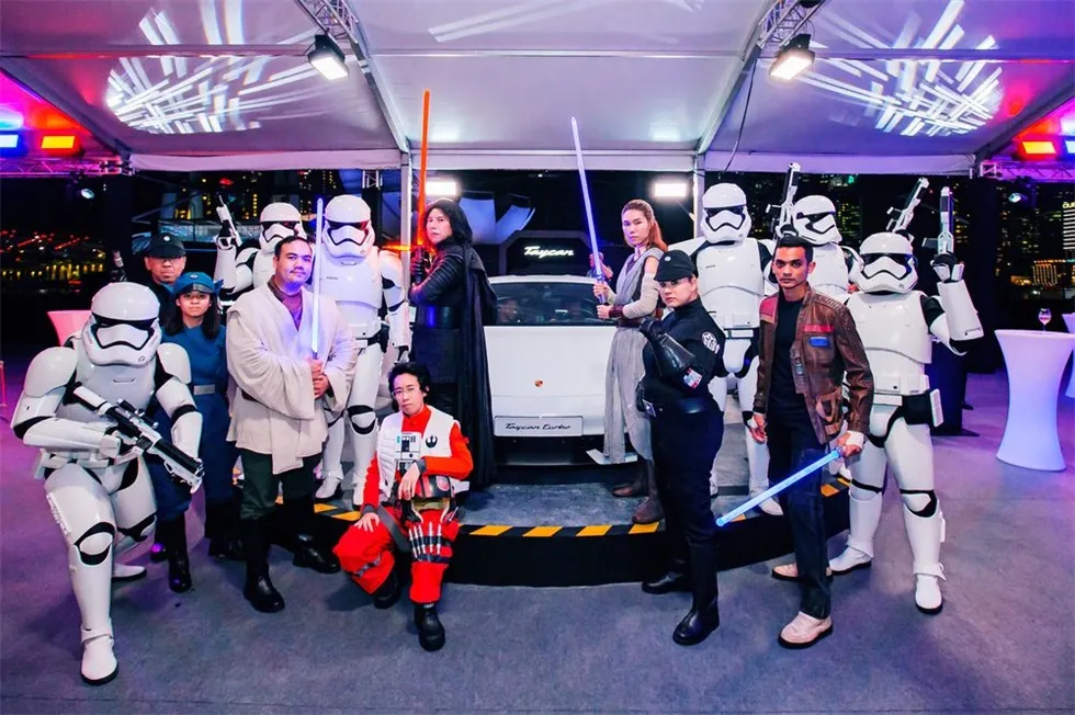 保時(shí)捷和星球大戰(zhàn)這兩個(gè)傳奇偶像在新加坡舉行的保時(shí)捷亞太地區(qū)首映式上聯(lián)手推出了首款全電動(dòng)跑車(chē)Taycan,讓該地區(qū)的傳統(tǒng)動(dòng)力車(chē)迷們相信,電動(dòng)汽車(chē)一樣可以擁有保時(shí)捷的靈魂,同時(shí)吸引跑車(chē)的新一代年輕受眾。
