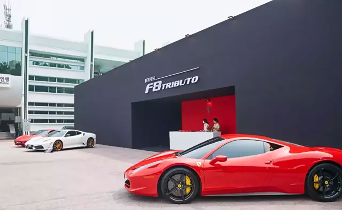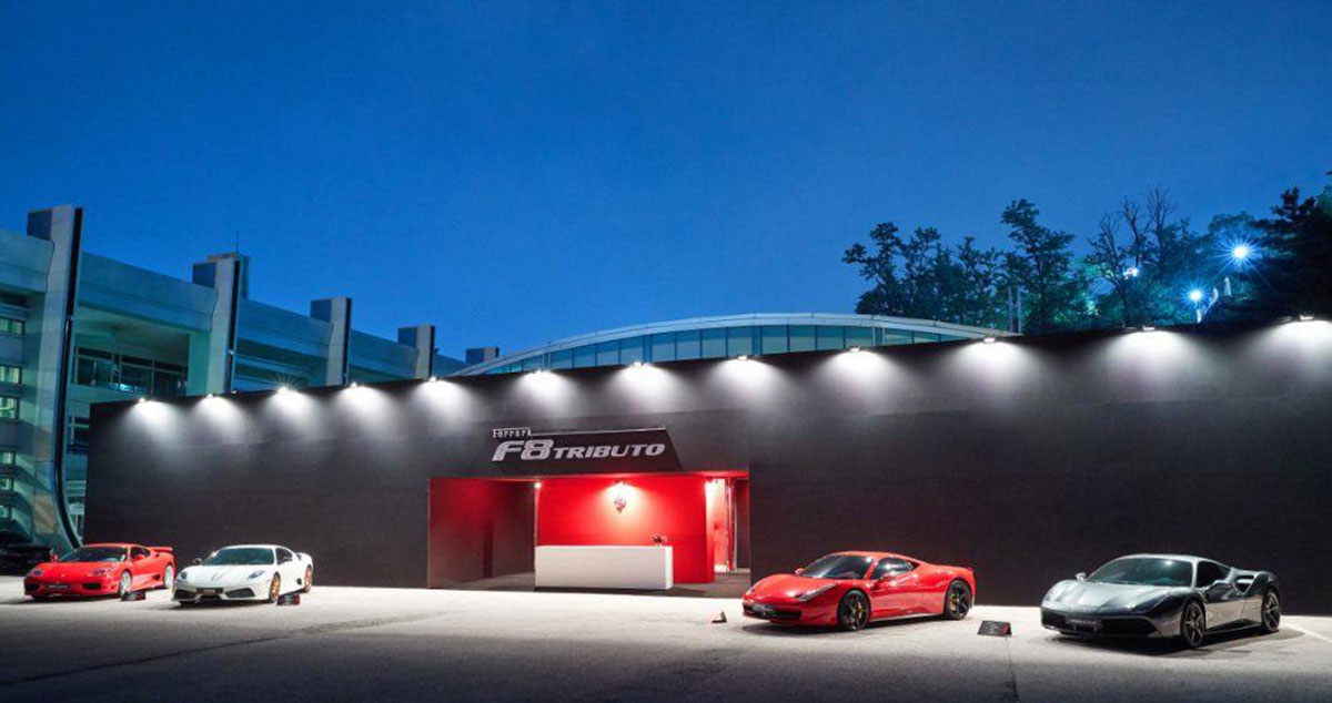 意大利超級(jí)跑車品牌法拉利最新車型F8 TRIBUTO在首爾舉行了一場紅色發(fā)布會(huì)。