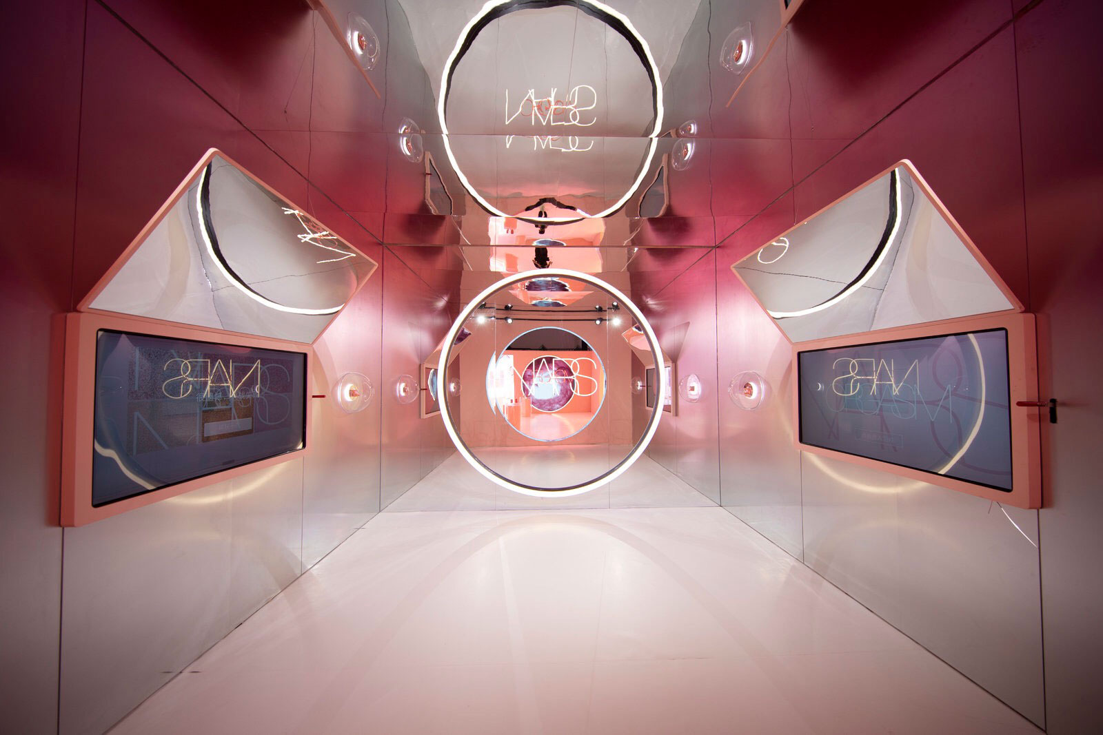 粉色水床擺放其中,來賓仿佛能感受到高光露的緩緩流動,置身于此被愉悅粉色包圍,成為拍照打卡的必選之地,令人沉醉;走進暴擊盤區(qū)域,玩色老虎機映入眼簾,來賓可在此進行彩妝盤的老虎機游戲,挑戰(zhàn)成功,即刻獲得NARS中樣一份。
