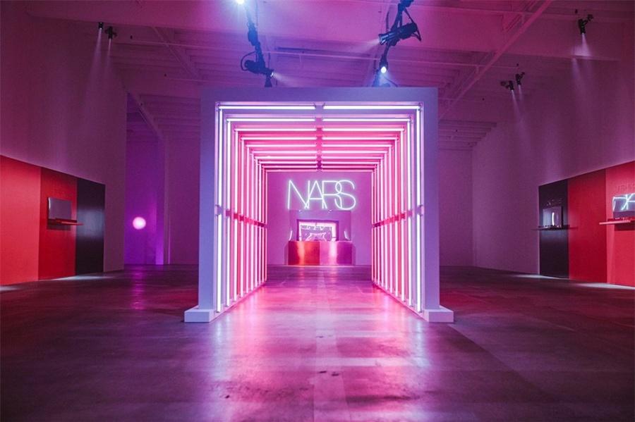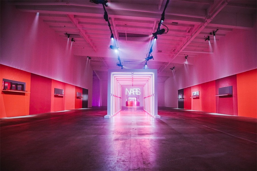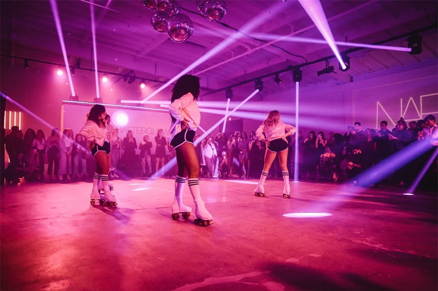 NARS Cosmetics是法國化妝品和護膚公司,為了慶祝NARS的余輝系列產(chǎn)品的發(fā)布,NARS在DTLA藝術區(qū)舉行了互動雞尾酒會。當晚在活動現(xiàn)場設計安裝了一個老式日光燈管拱廊供那些有社交媒體影響力的美女們擺姿勢照相,除了現(xiàn)場展示NARS的新產(chǎn)品,還邀請了輪滑表演者、嘻哈舞者表演。