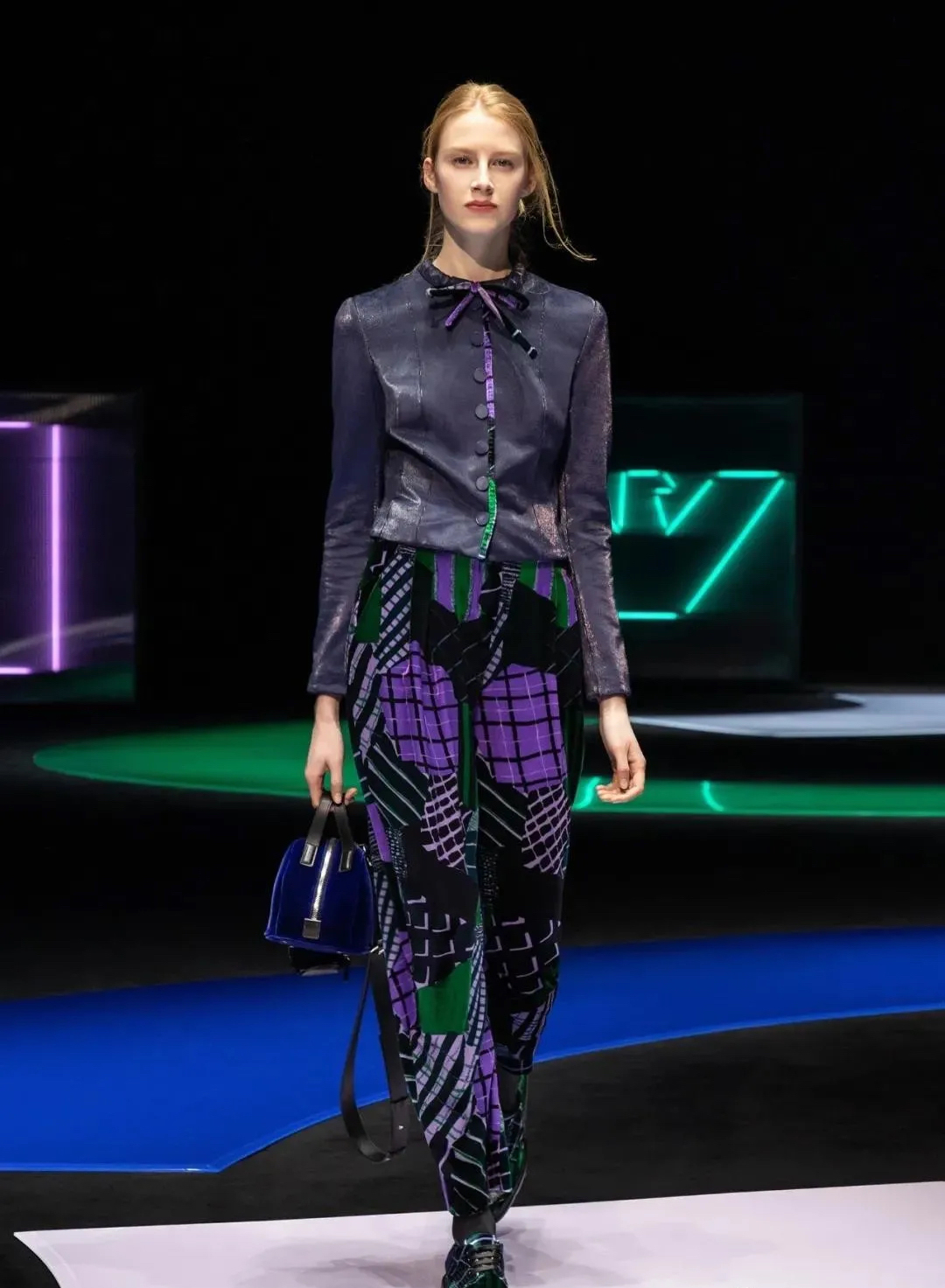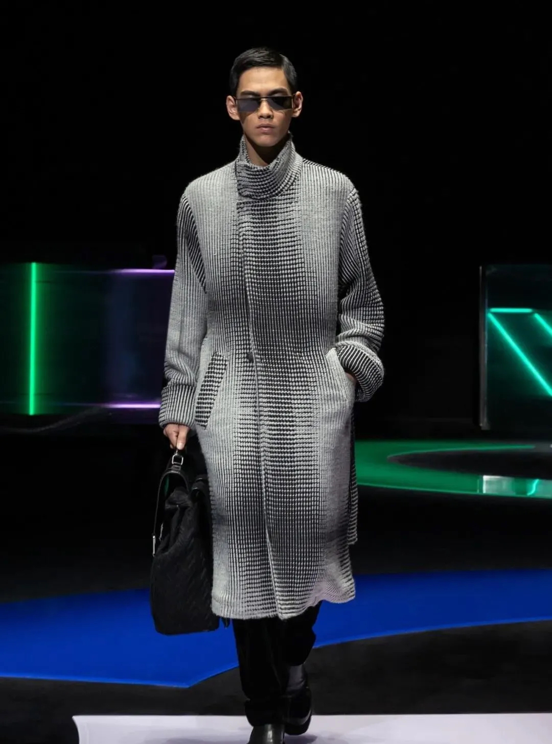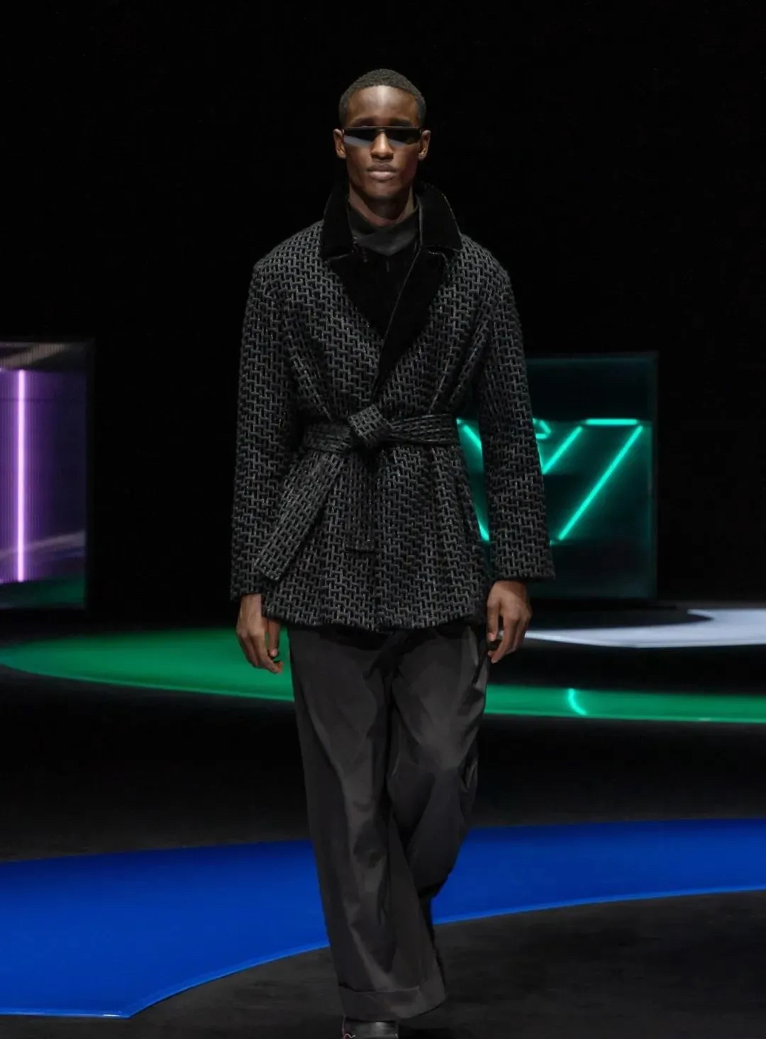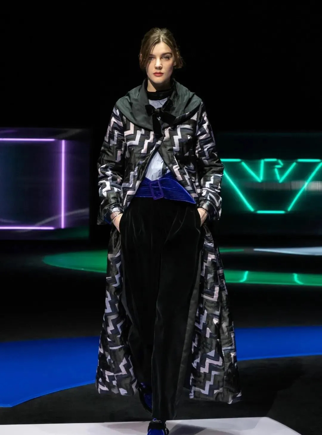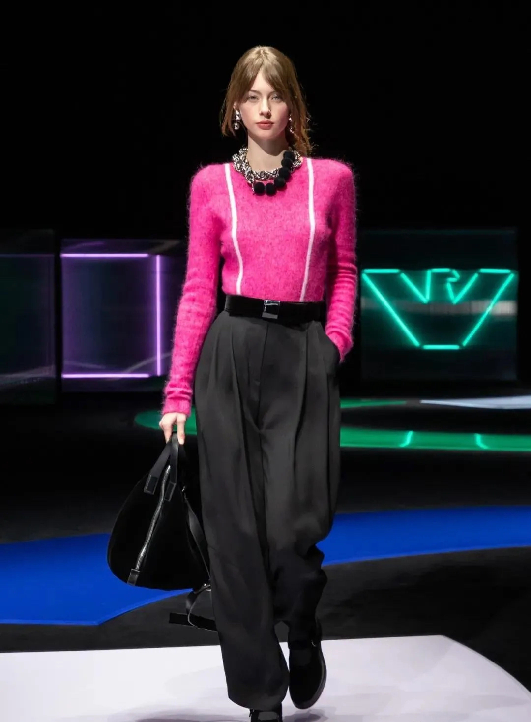 阿瑪尼Giorgio Armani 2021秋冬男女裝系列時裝秀秀場以霓虹色裝飾,彌漫著80年代的迷人氣氛,與80年代迷人的時髦基因共同搖擺Pop新浪潮。
