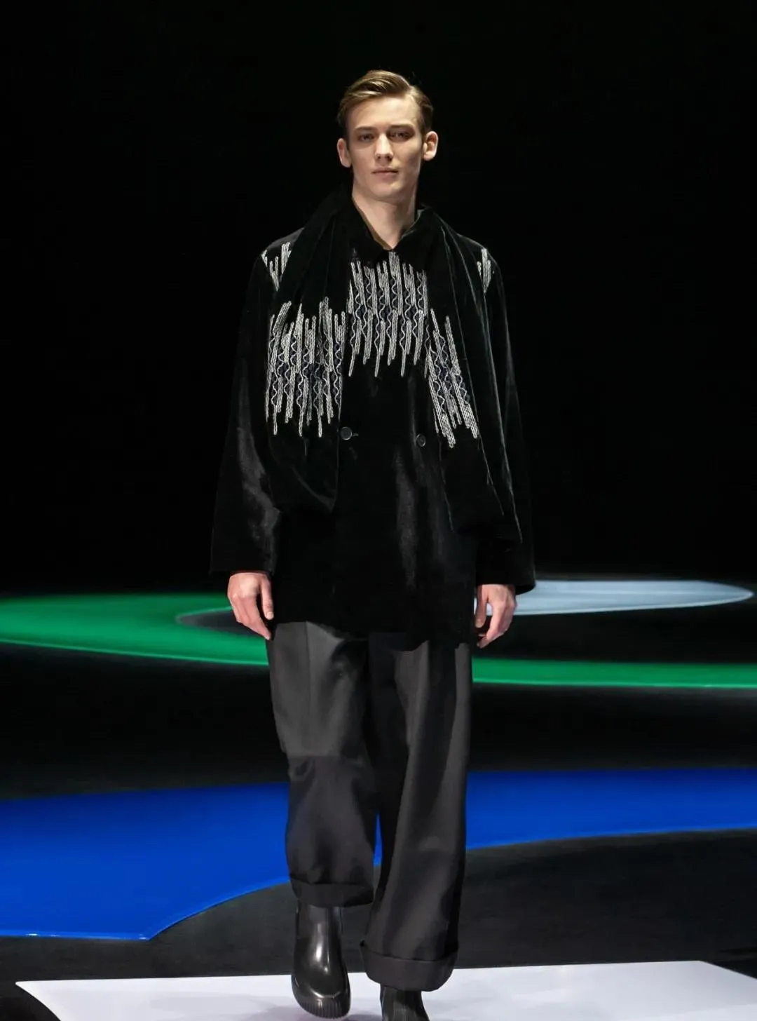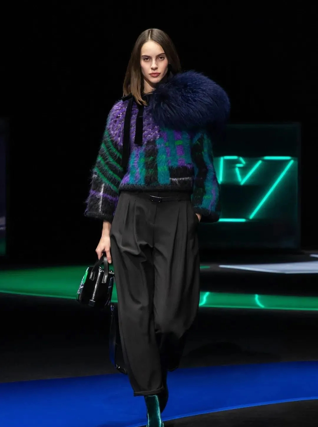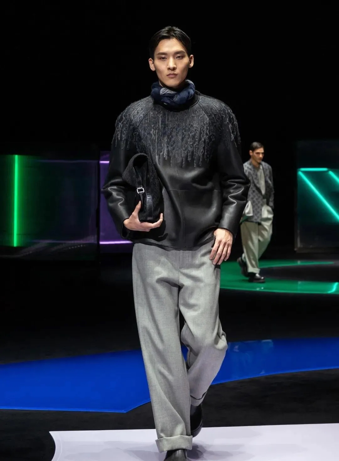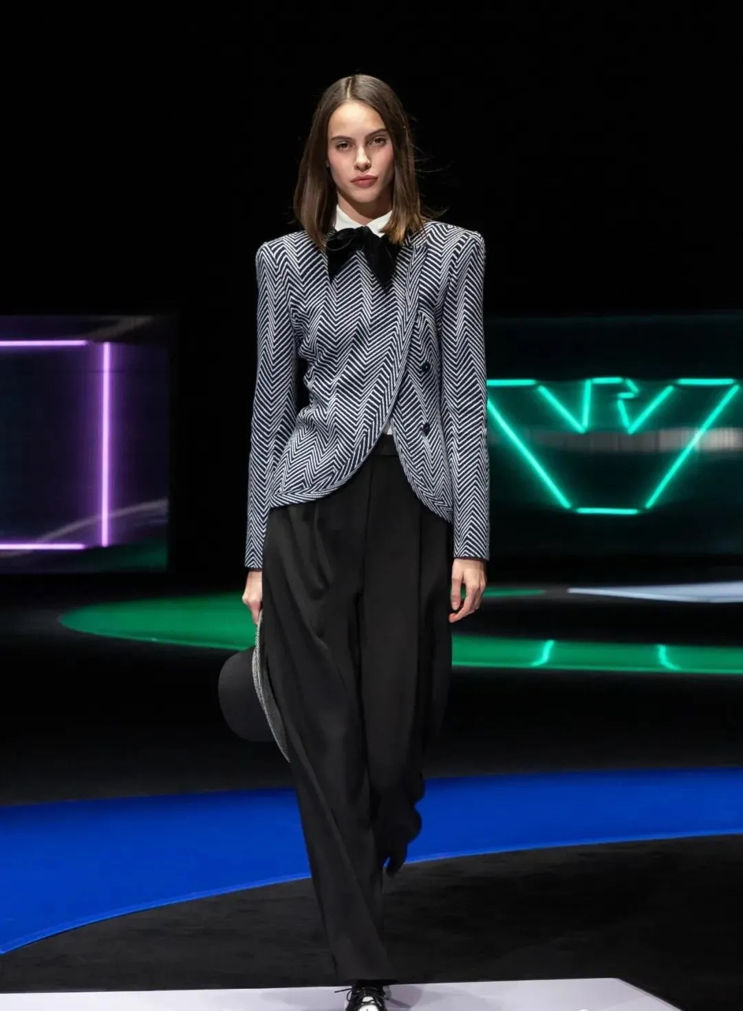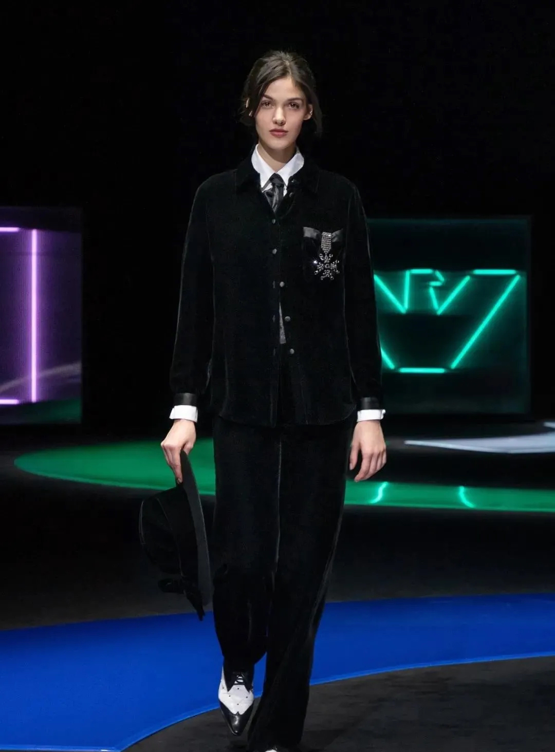 阿瑪尼Giorgio Armani 2021秋冬男女裝系列時裝秀秀場以霓虹色裝飾,彌漫著80年代的迷人氣氛,與80年代迷人的時髦基因共同搖擺Pop新浪潮。