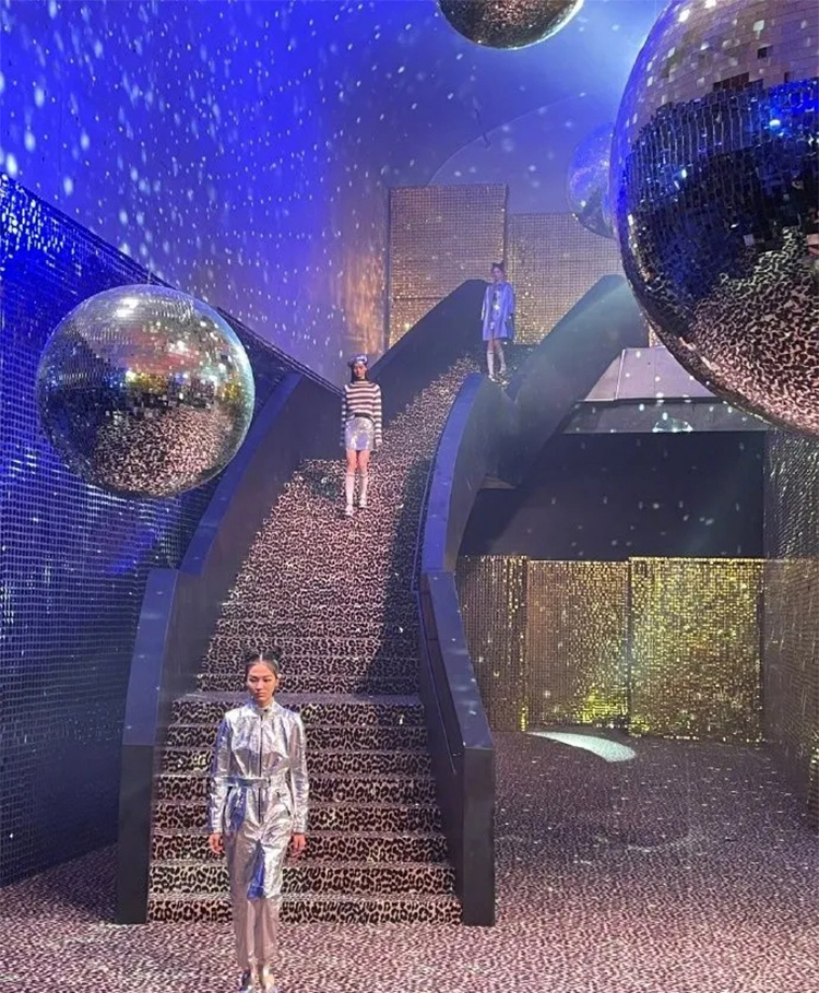 Dior在上海舉辦了2021秋季成衣系列發(fā)布秀。Dior2021秋季成衣系列革新演繹一系列豐富主題,從英氏波普藝術(shù)到激進(jìn)的新未來主義,以橫向流行美學(xué)詮釋品牌基因。本次Dior2021秋季成衣系列秀場布置通過一系列藝術(shù)主題為靈感打造,搶眼的迪斯科球和炫目的豹紋印花,搭配上迷幻動(dòng)感的電子音樂,模特從豹紋印花樓梯走來,整個(gè)現(xiàn)場充滿了復(fù)古的浪漫色彩。
