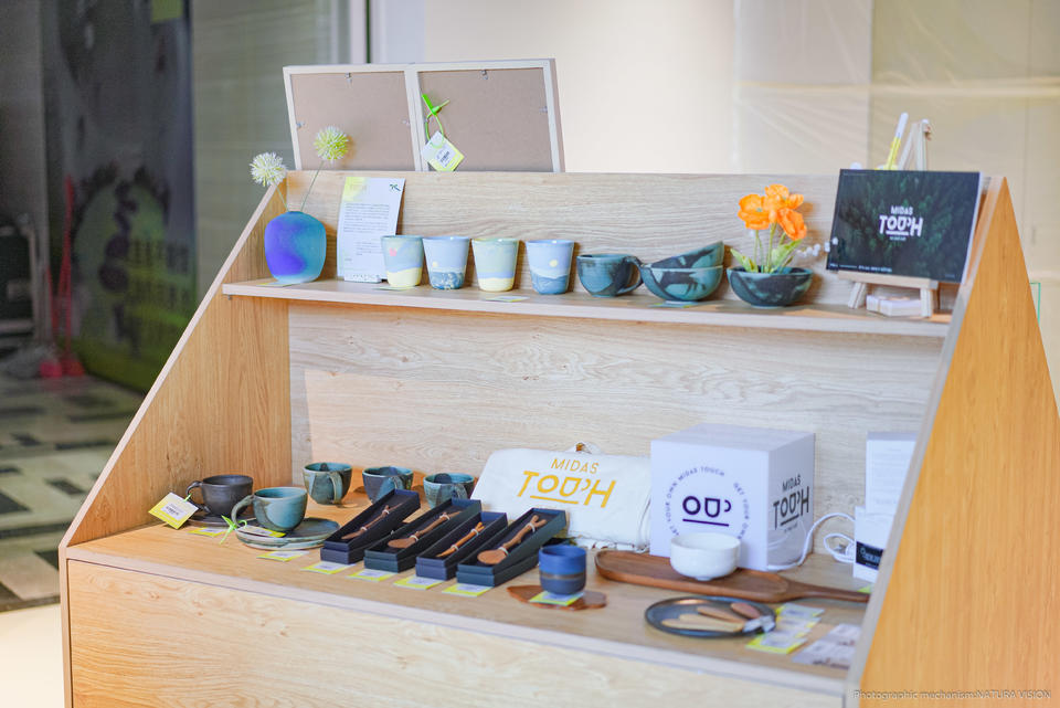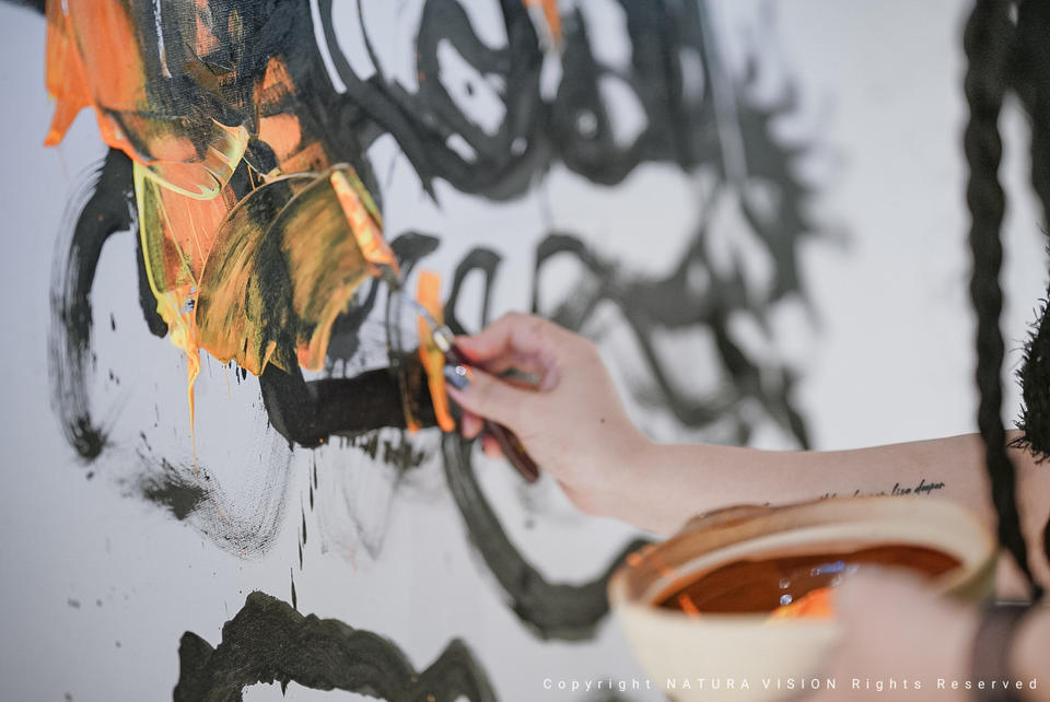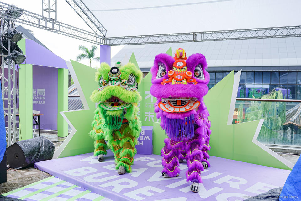 順德歡樂海岸不期館2.0,和Fish漁農(nóng)處,以及一眾本土組織、品牌攤主、音樂人、藝術(shù)家,帶來兩天非常豐富的原創(chuàng)活動!幾位本地的攤主除了帶了許多有意思的作品之外,還進行了一系列的原創(chuàng)分享~還有體驗工作坊哦!當然除了市集和演出活動之外,本次未來織造局還有一個開館展覽:「地方的AB面」,由順德本地三個青年團隊打造。喜聞樂見的主理人Eason在現(xiàn)場即墨揮毫在畫板上創(chuàng)作了兩只醒獅,一個字:型!