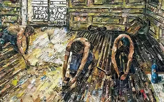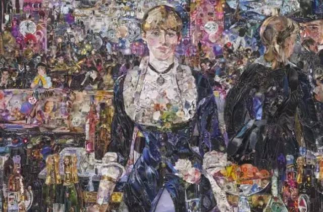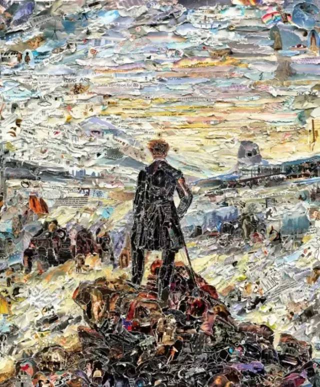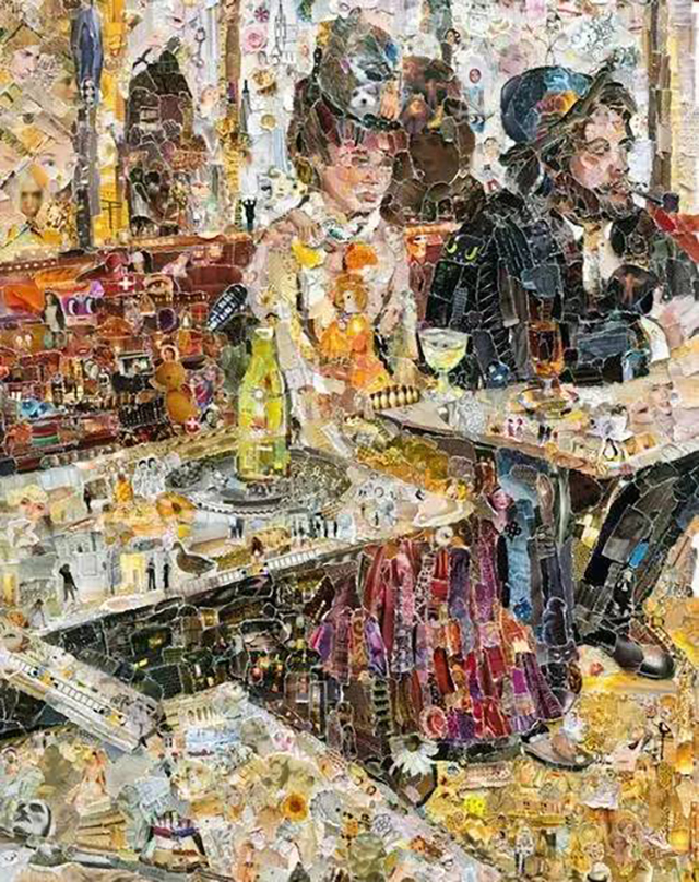 如果不仔細(xì)看,以為都是用顏料畫出來的呢,認(rèn)真看才發(fā)現(xiàn)都是用廢紙、舊書、破雜志拼湊而成,而且復(fù)制出來的名畫也極具觀賞性。
