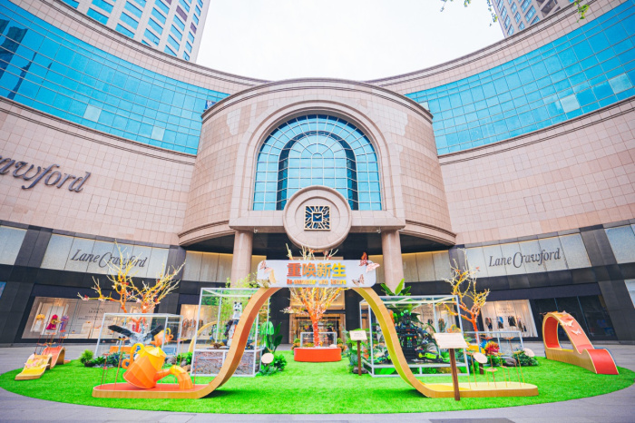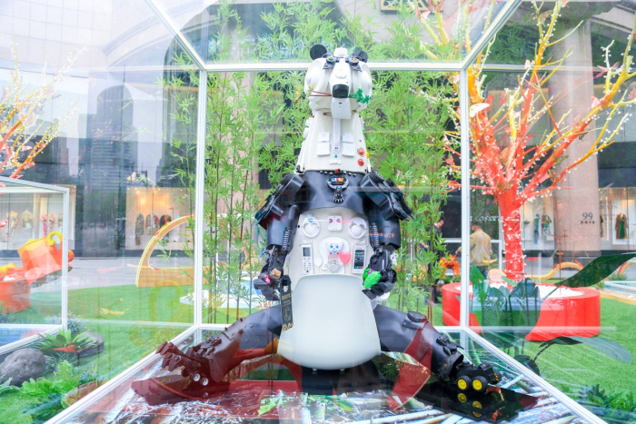 “重喚新生”這個(gè)環(huán)保藝術(shù)裝置,是用環(huán)保材料打造的獨(dú)特藝術(shù)空間,由象征著愛(ài)的彩虹,及動(dòng)物雕”塑”組合而成。七種繽紛色彩的彩虹裝置,代表了對(duì)愛(ài)的呼吁;七款熊貓、企鵝、海龜?shù)热孪盗小痹偕鷦?dòng)物”。用溫柔和愛(ài),引發(fā)對(duì)自然生命的覺(jué)知,同時(shí)也提供了一個(gè)意義非凡的小憩空間,然你放慢節(jié)奏,感受聆聽(tīng)藝術(shù)背后的聲音。