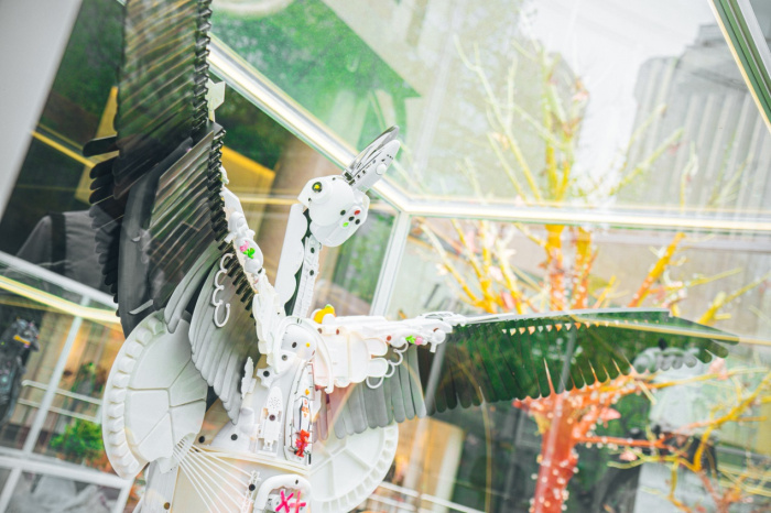 高昂的頭顱、振動(dòng)的雙翅,還有胸口滿(mǎn)懷熱血的小紅人,將信天翁的飛翔夢(mèng)展現(xiàn)得淋漓盡致。即便身處在科技高速發(fā)展的時(shí)代,它也依然眺望著遠(yuǎn)方的天空,盼望著能再一次振翅高飛。這次,用廢棄的兒童飛機(jī)玩具,也能展現(xiàn)一個(gè)滿(mǎn)含故事的形象。