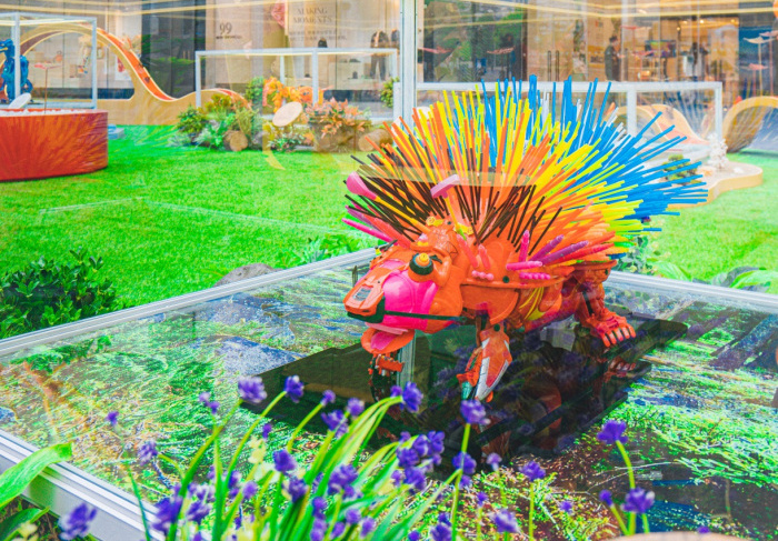 冰川消融,北極海平面在上升;塑料垃圾,讓繁多海洋生物艱難生存;過(guò)渡的資源消耗,對(duì)環(huán)境的不重視,給大家共同的美麗家園帶來(lái)更多負(fù)擔(dān);繁忙世界迷人眼,放下匆匆腳步,一起保護(hù)環(huán)境,我們可以做些什么?大上海時(shí)代廣場(chǎng)聯(lián)合法國(guó)藝術(shù)家Gilles Cenazandotti,用回收廢棄塑料,打造出了一片綠色自然綺境。