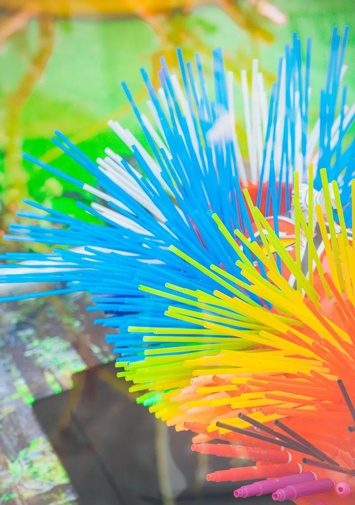 有研究表明,如果鯨魚(yú)誤吸入一根吸管,它將再也無(wú)法生存下去,而丟棄的又何止一根吸管。用完即棄的圓珠筆亦是如此,用了上百根吸管和圓珠筆打造的豪豬,也是一枚值得大家去反思的存在。長(zhǎng)長(zhǎng)的吸管錯(cuò)落立在身體表面,既描述出了豪豬的特征,也刺痛了觀看者的心。