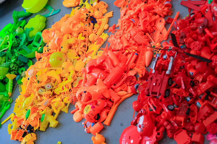 當(dāng)大家熟悉的鍵盤(pán)、行李箱,玩具槍被賦予全新意義時(shí)會(huì)是什么樣子。Gilles通過(guò)獨(dú)具藝術(shù)性的創(chuàng)意組裝,為大家呈現(xiàn)了面前正顏厲色的大猩猩。嚴(yán)肅的表情和強(qiáng)勢(shì)的黑色,是他對(duì)外界立起的防御,而綠色則代表他對(duì)自然的歸屬感,截然相反的兩種顏色對(duì)比之下,是叢林守護(hù)者自持的威嚴(yán)。