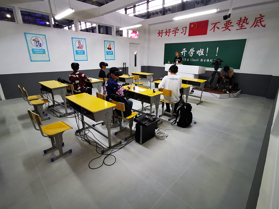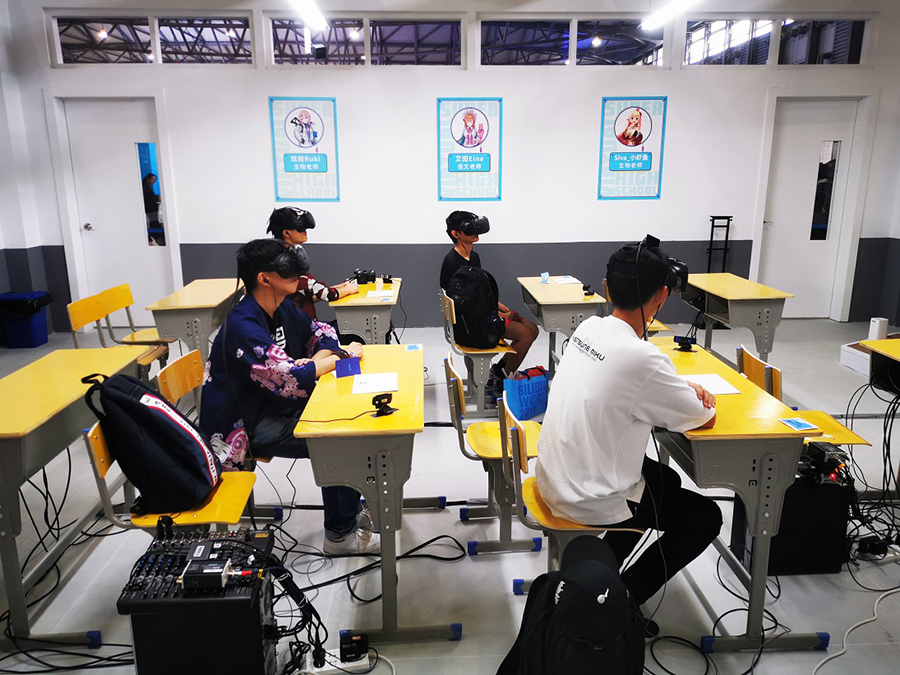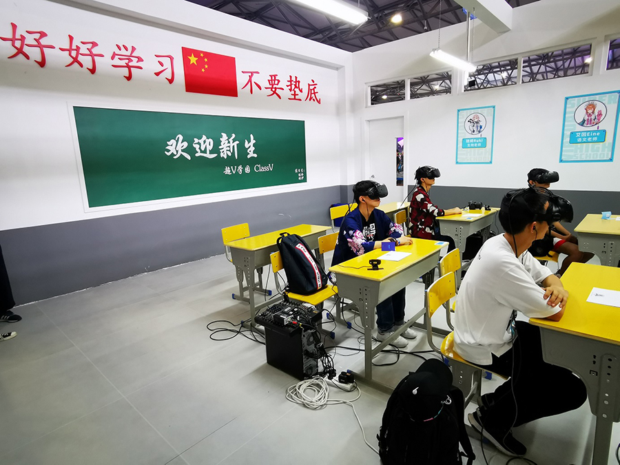 本次BilibiliWorld上?,F(xiàn)場,新增了虛擬主播教室,通過5G技術(shù)實現(xiàn)的信息實時傳播,用戶可以毫無障礙的與bilibili最新成立的vtuber團隊——超V學園的4位成員就行對話,帶上VR眼鏡仿佛“融入了vtuber的生活。