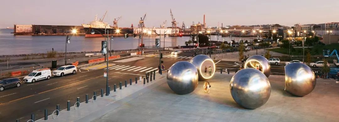 最有影響力的藝術(shù)家之一奧拉維爾·埃利亞松在美國西海岸大通中心設(shè)計(jì)了名為“Seeing Spheres”的藝術(shù)裝置,這也是埃利亞松在美國規(guī)模最大的永久性公共裝置。