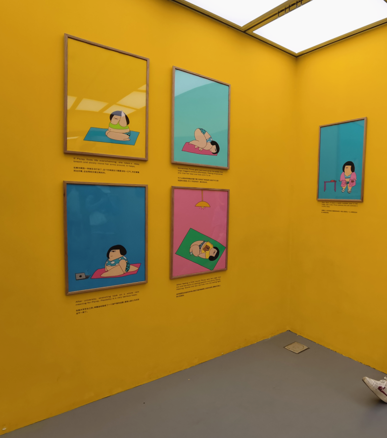 宅家俱樂部:這片區(qū)域里放了十幾幅Pansy形象的作品,Pansy躺著的樣子,是不是和前幾個月宅家的你一模一樣?作品下方配有Pansy的人生解讀,中英文兩種版本各有含義,去現(xiàn)場找一句你最喜歡的話吧。