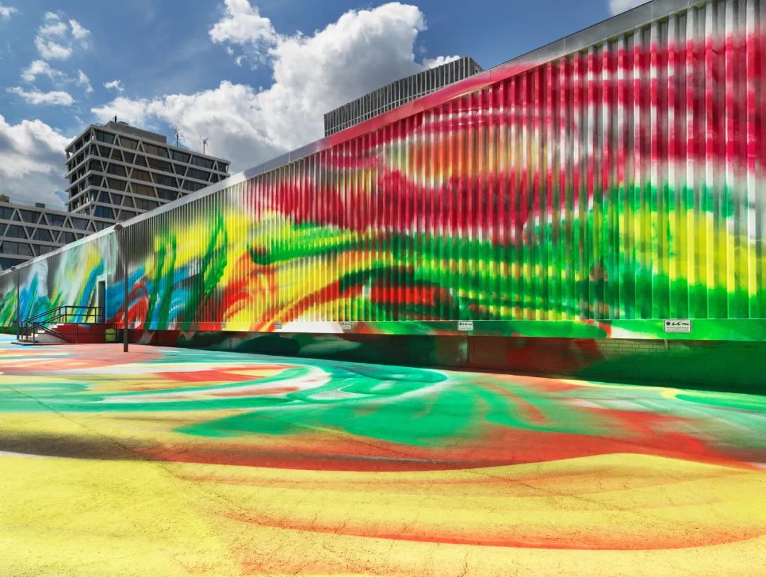 最近,Katharina Grosse在柏林漢堡火車站最新展覽名為“不是我們”,展出一系列壯觀的特定場域大型繪畫。萬花筒繪畫將自然和充滿活力的顏色和形態(tài)結(jié)合起來,用強烈的色彩和對比度占領(lǐng)博物館歷史悠久的主廳(以及外面的公共場地),使空間每個角度都創(chuàng)造了一個新的視覺.這件作品注定將在互聯(lián)網(wǎng)上引起轟動。