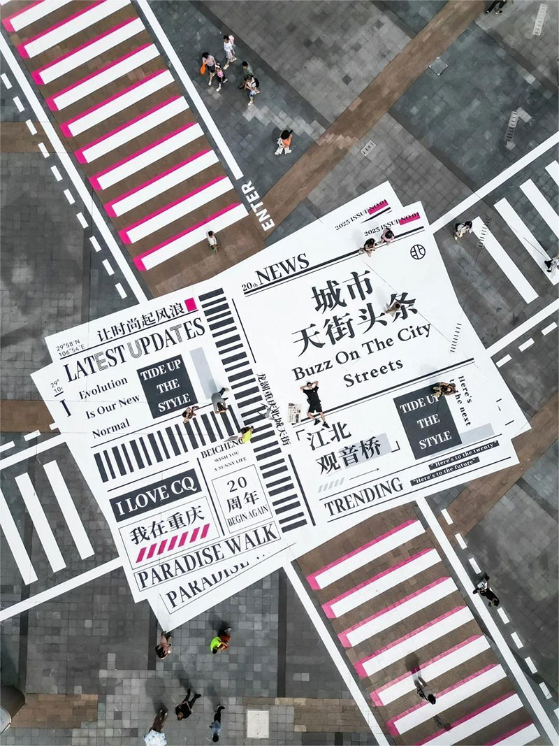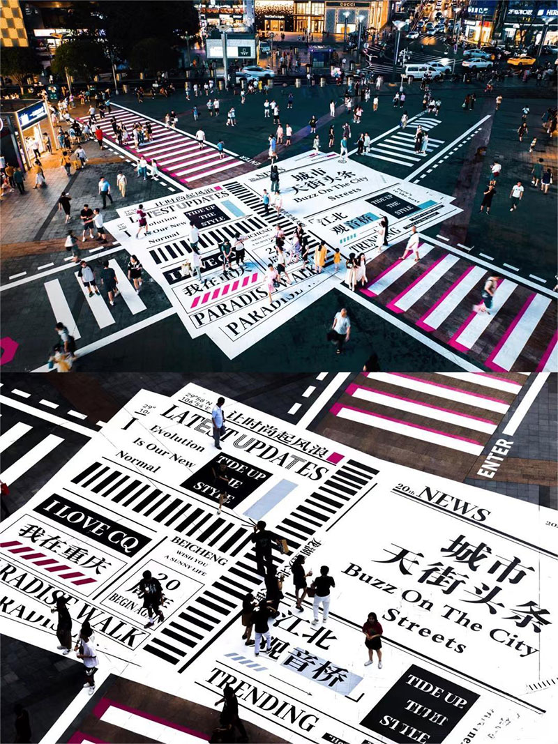 無界之行潮北斑馬線3.0;對話城市脈絡(luò),更新迭代城市青年時尚力量。龍湖重慶北城天街·夏日企劃重慶觀音橋的網(wǎng)紅斑馬線,高街頭條,重塑城市潮流態(tài)度。