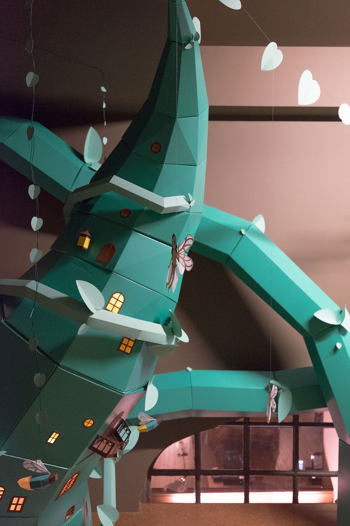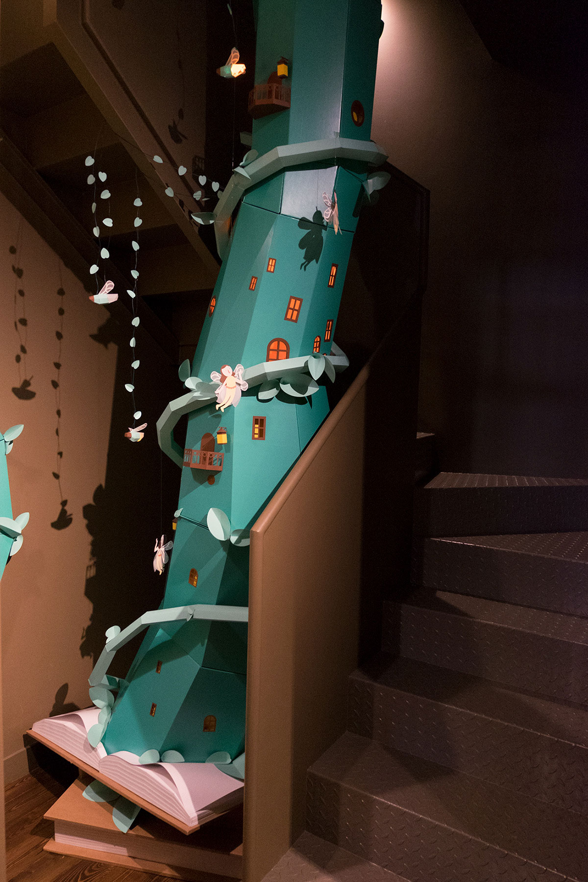 受到不同古典書籍故事的啟發(fā),我們創(chuàng)造了一個(gè)巨大的豆莖,可以穿透書籍和墻壁。 在莖的周圍,你還可以找到數(shù)十個(gè)仙女、螢火蟲和各種神奇的生物。 這個(gè)巨大的豆莖旨在鼓勵(lì)孩子們發(fā)現(xiàn)這個(gè)小世界,透過(guò)窗戶看,看仙女們的房子,并與不同角色一起玩。