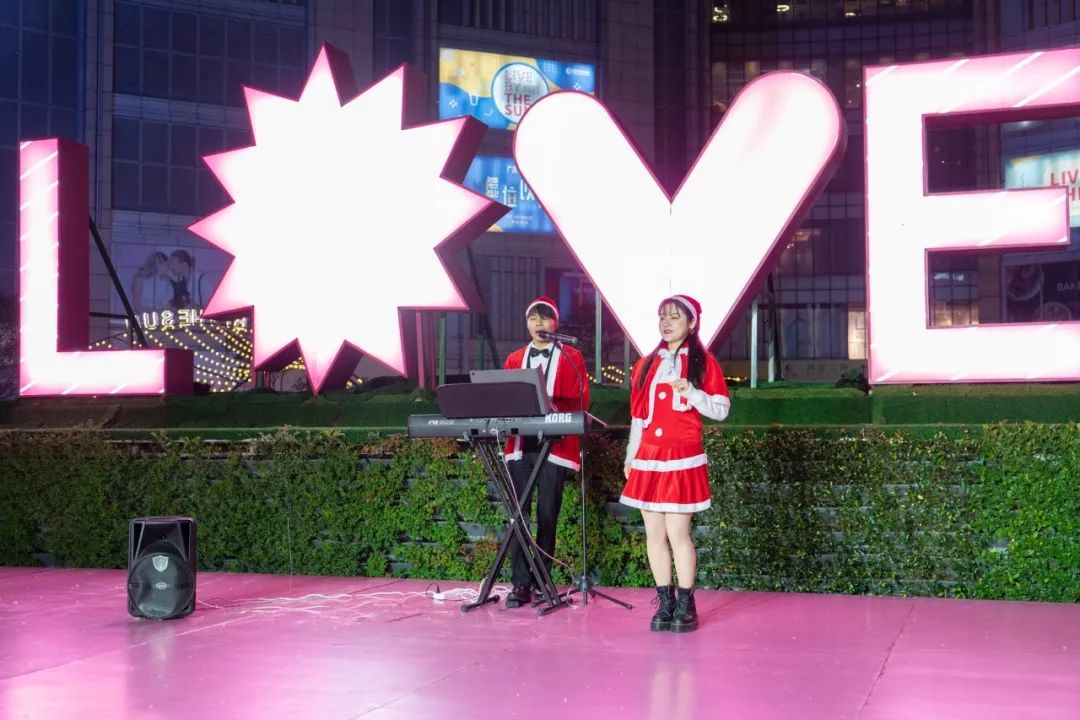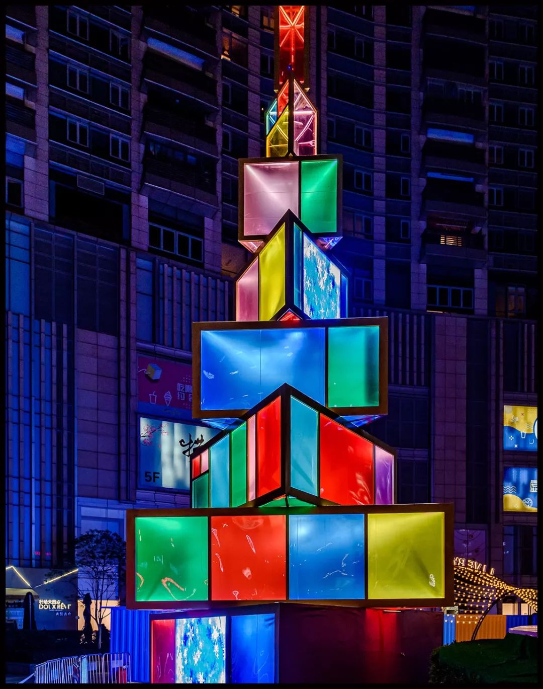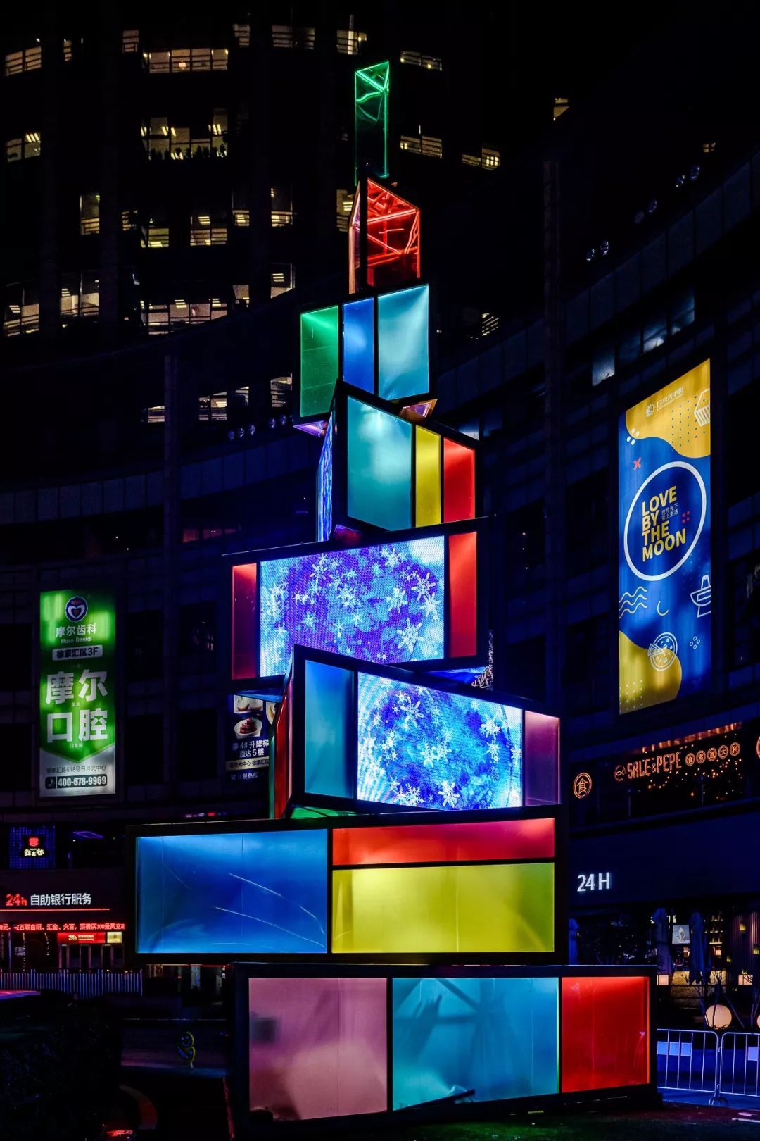 一樓中庭花園內(nèi),20臺造雪機替代了空中的云,向大地灑下雪花,整個空間被一種浪漫溫柔的氣氛所包圍,這樣的浪漫雪花會一直持續(xù)到新年第一天。1700㎡的中庭花園,雪花飛舞,落在草地上、屋頂上,幻化出流光溢彩的雪國勝景,帶你開啟一段獨特的“跨年奇遇”?;▓@中央,佇立著大型LED幾何造型樹,像是蒙德立安格子畫走出二維桎梏來到3D世界,幾何屏幕上,朱紅色、湖藍色、水綠色、檸檬黃色,繽紛斑斕,像是開啟了顏色世界中的大冒險。除了超有儀式感的飄雪外,還有各項主題活動奏響歲末狂響曲,不斷沖擊著我們的視覺和思維。讓人眼花繚亂,目不暇接的同時,仿佛瞬間穿越兔子洞,來到愛麗絲的夢幻仙境。水晶芭蕾、魔幻互動表演、樂隊演出等精彩表演,就在打浦橋上海日月光中心1樓中庭花園的主舞臺上輪番上演,年味市集里的珠寶首飾和美食更是看花了眼,挑不過來了都。