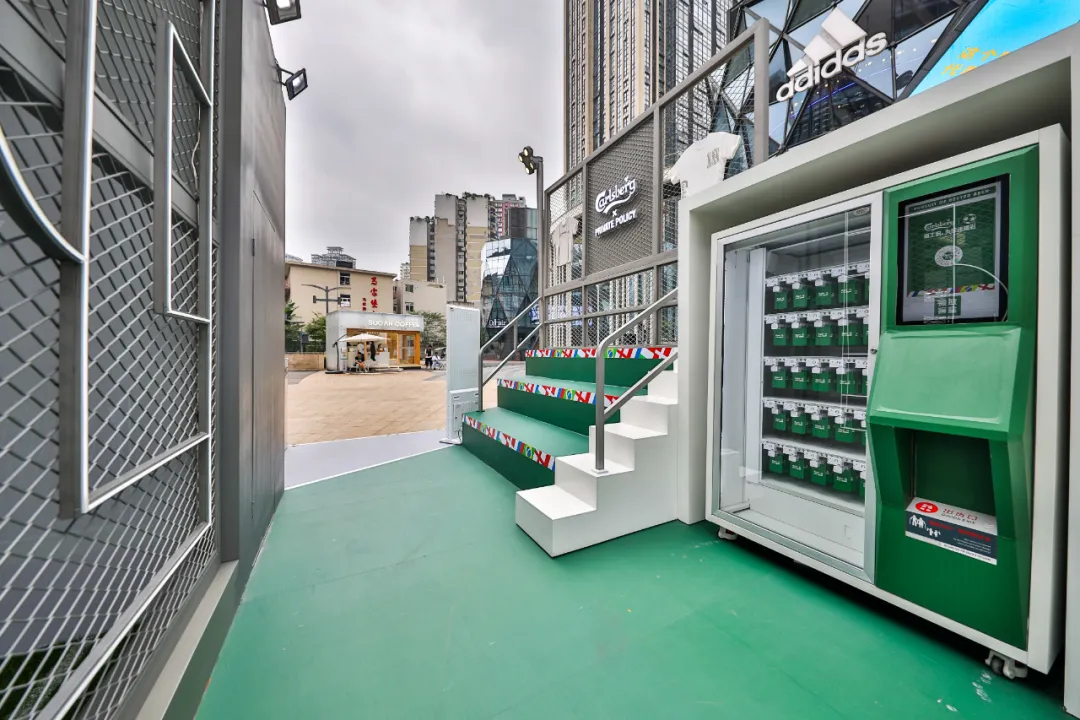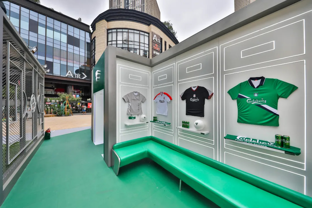 亮相于成都339的嘉士伯“球迷喝彩吧”快閃酒吧,用銀白色酷炫鐵圍欄和活力洋溢的青草綠坐席,一秒直擊時尚因子。青春活力的綠茵賽場和城市的現(xiàn)代化元素完美融合,讓你在城市也能有球場的feel,潮酷率直接滿分!從看臺到精致的盲盒機,這里每個場景都具有超高出片率,制霸朋友圈的秘密揭曉,足球時尚大片一觸即發(fā)。