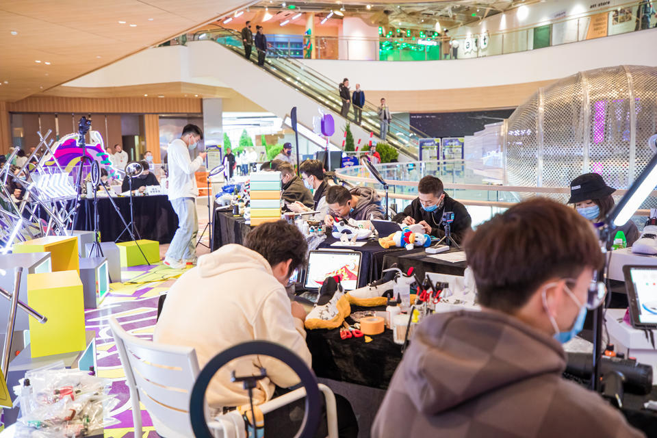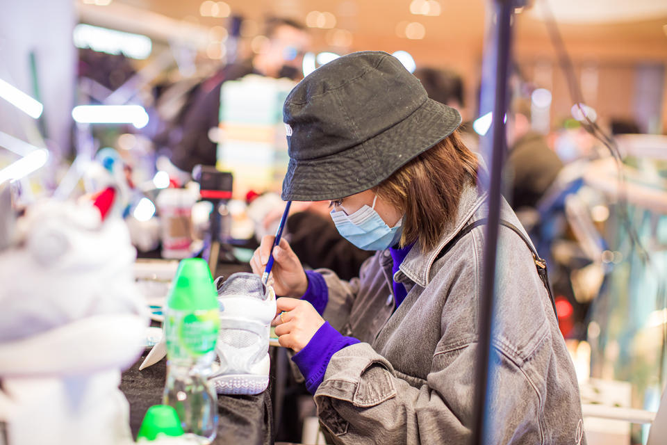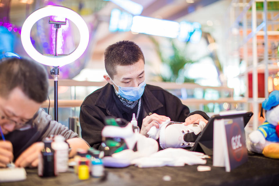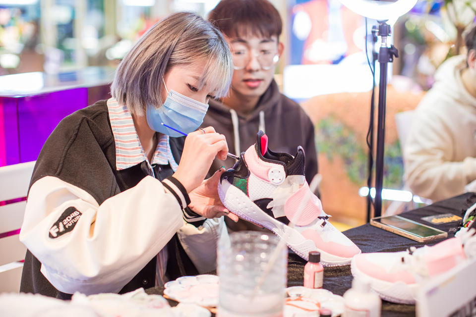 在“「年輕潮力周」暨第三屆全國球鞋定制大師賽”快閃活動里,特地邀請了10位中國頂尖球鞋定制大師來現(xiàn)場定制球鞋,通過“球鞋文化”聚集年輕人,和年輕人對話。