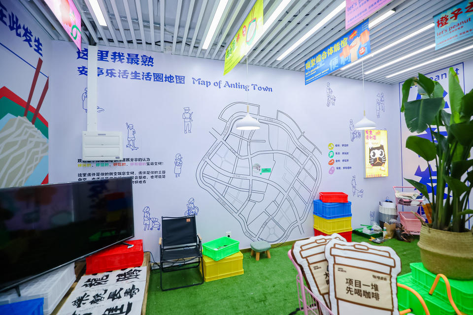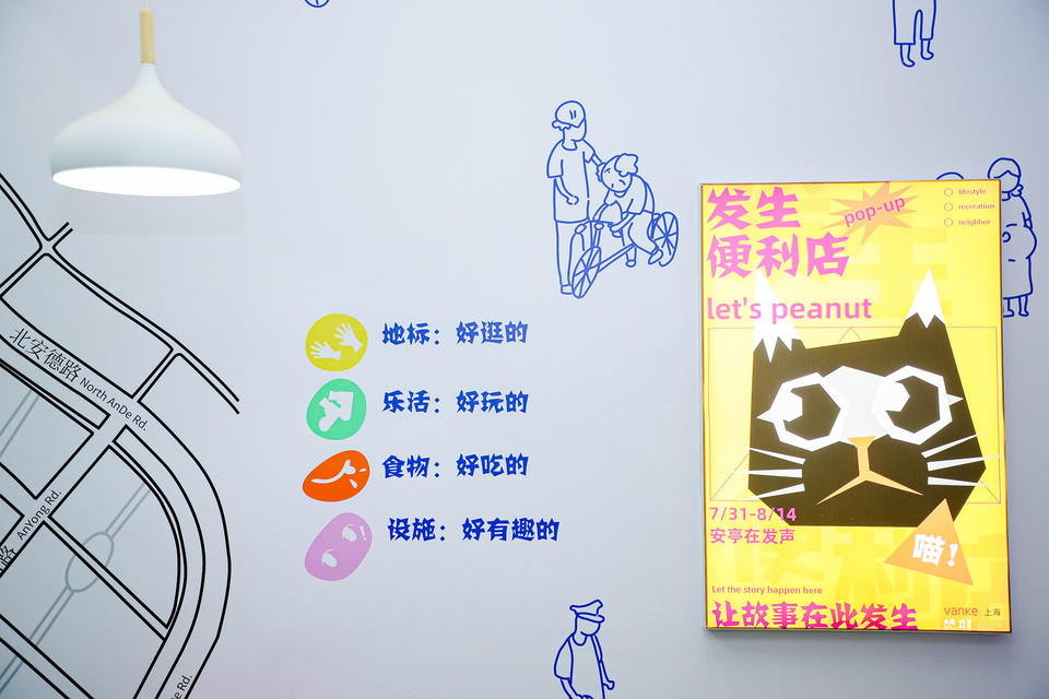 萬科邀請專業(yè)的社區(qū)營造組織「大魚社區(qū)營造發(fā)展中心」,及知名的建筑媒體「AssBook設(shè)計(jì)食堂」共同打造——以發(fā)現(xiàn)并且創(chuàng)造社區(qū)中的 “人性互動(dòng)”,觸發(fā)更多社區(qū)活力,以此作為長三角新生活圈樣本為目標(biāo),以激活社區(qū)商業(yè)為目的,「大魚營造」鏈接在地商戶圈,專業(yè)策展團(tuán)隊(duì)將每一家店的特色巧妙突出,讓安亭好店的故事在此發(fā)生,以此建立起商戶與居民的可持續(xù)鏈接。緊隨著一行人參觀了「安亭成長展」,不到20米的連廊講述了自1984年安亭開發(fā)到2015年萬科打造再到如今的產(chǎn)城融合,以及2035年的長三角生活圈目標(biāo)。