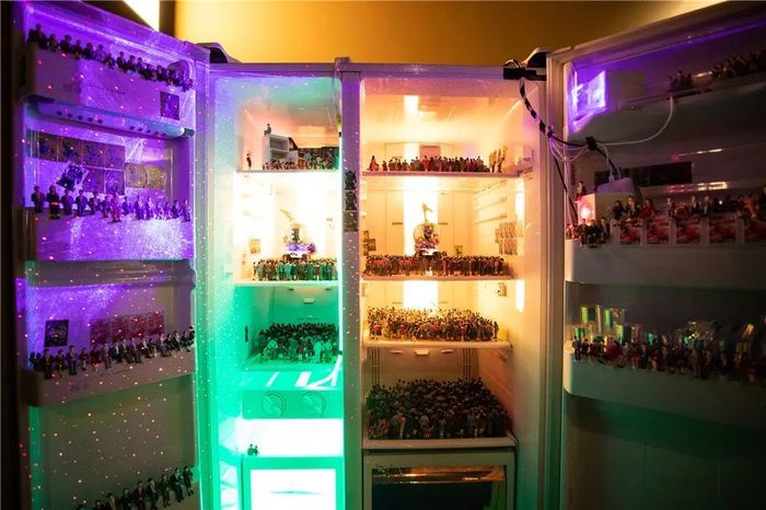 《樂隊的夏天》讓School Live&Bar火了,而老板劉非的家當(dāng)就是酒吧里的人人人人人人。School酒吧在很多樂隊的成長歷程中留下了濃墨重彩的一筆,不論市場冷暖,這里都為殊途同歸的音樂人留有一方夢想的舞臺。這次藝術(shù)家張哲溢竟將School酒吧搬到798,并且放入一臺冰箱中,用微觀重現(xiàn)的方式還原酒吧中的搖滾現(xiàn)場。冰與火的較量,這就很刺激了,快來一起Rock起來吧。