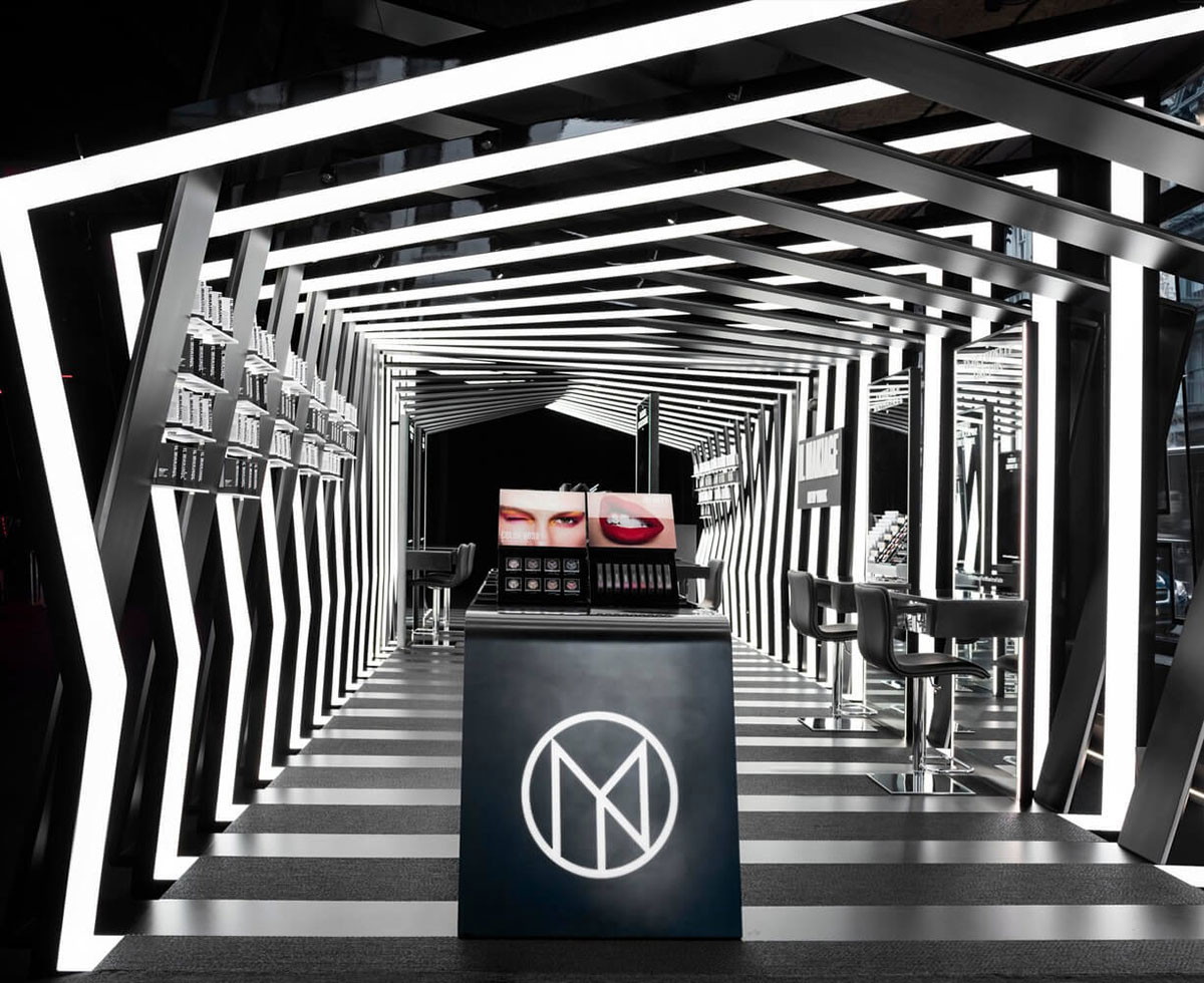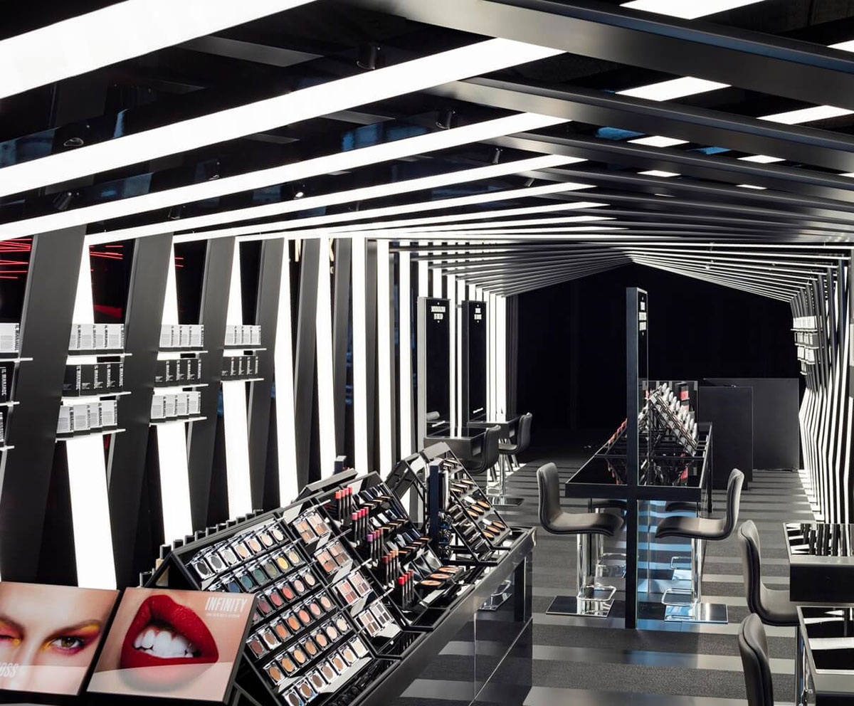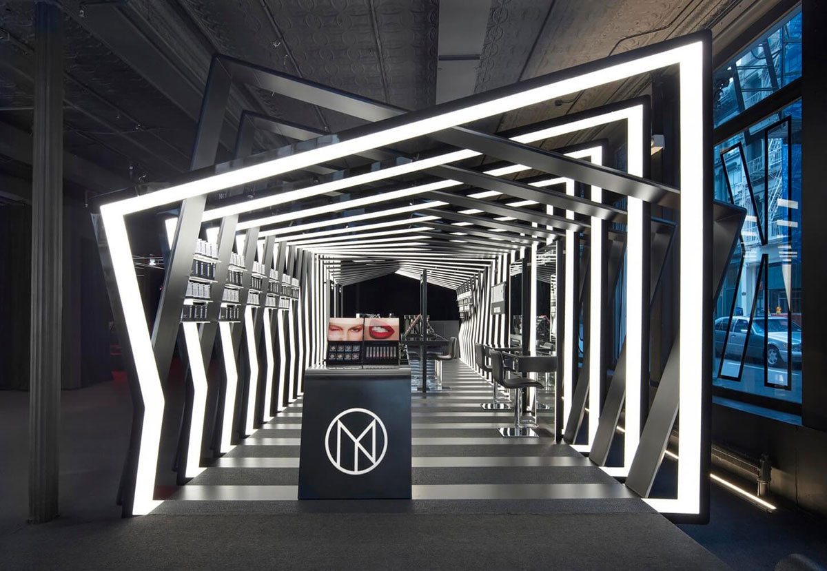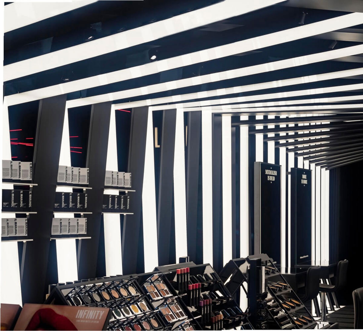 Il Makiage在紐約的快閃店的靈感來自Il Makiage角落的別致圖案。它在光澤和啞光飾面之間交替,以創(chuàng)建折疊的帶狀效果,每個帶狀結構以一定角度略微偏轉,形成動態(tài)的感官效果。