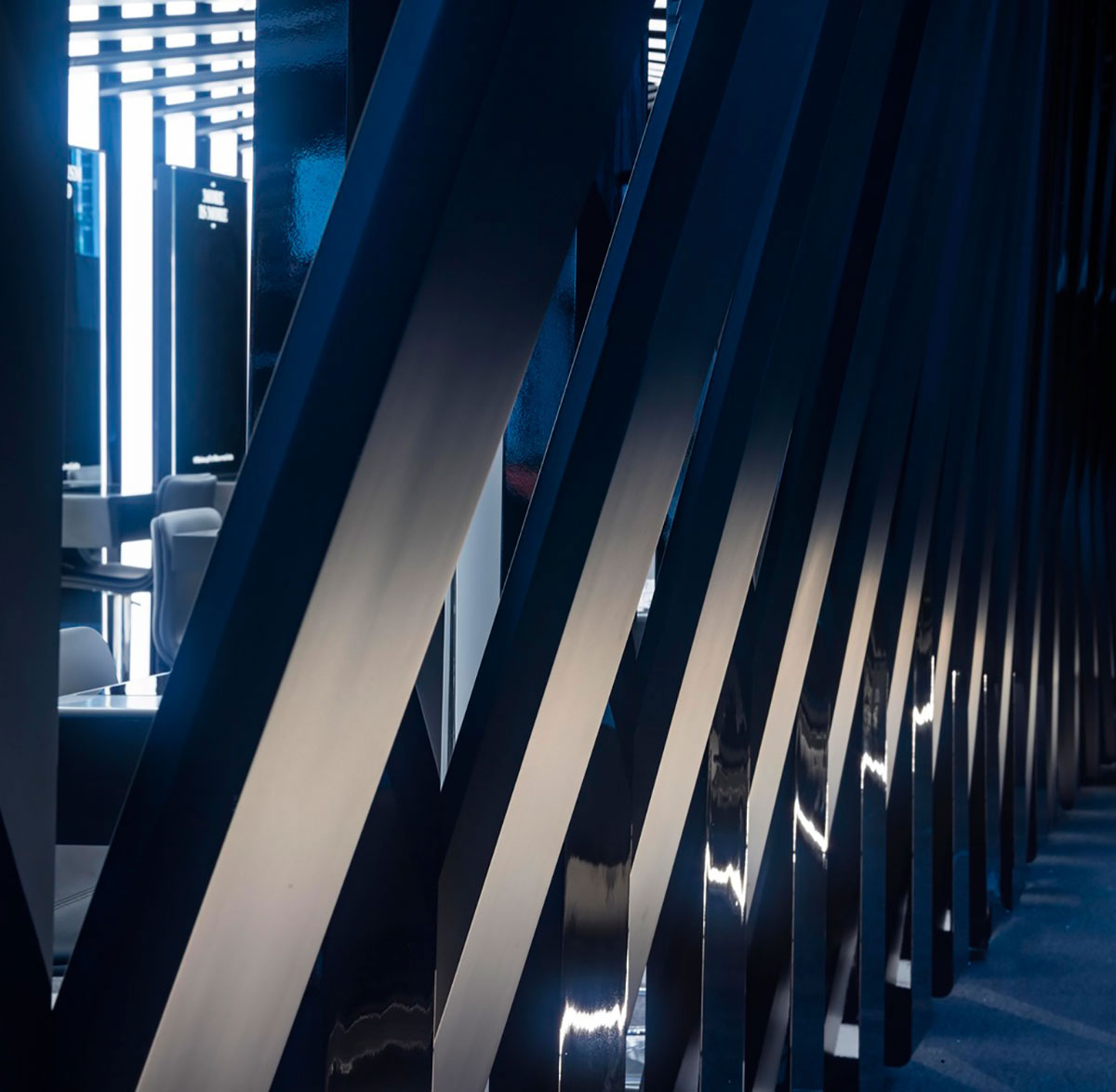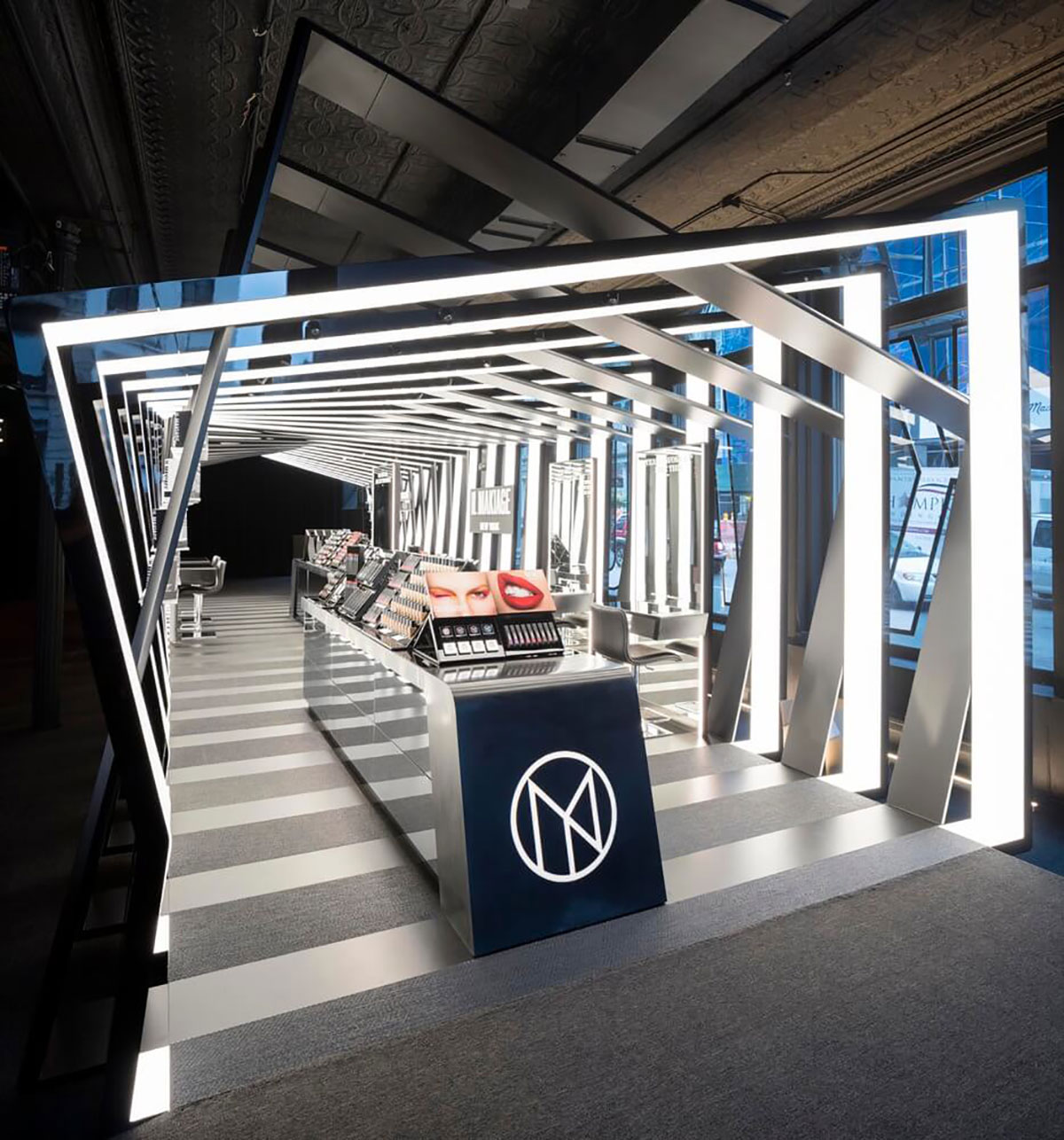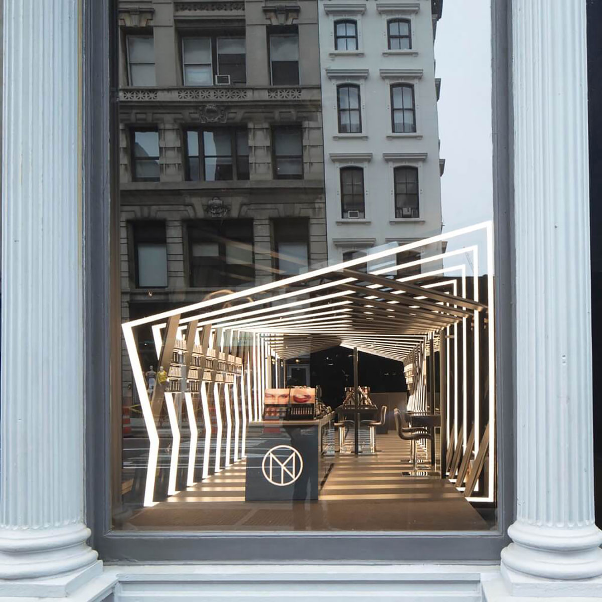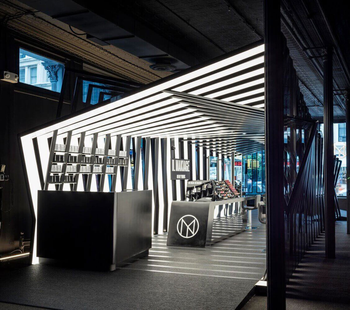 Il Makiage在紐約的快閃店的靈感來自Il Makiage角落的別致圖案。它在光澤和啞光飾面之間交替,以創(chuàng)建折疊的帶狀效果,每個帶狀結構以一定角度略微偏轉,形成動態(tài)的感官效果。