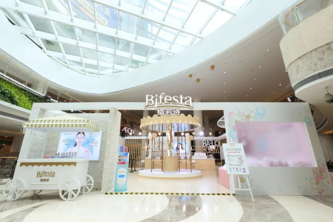 近期,漫丹公司旗下的卸妝潔膚品牌Bifesta繽若詩在廣州3號線上的高德置地廣場中庭打造了一個超甜超浪漫的快閃活動。