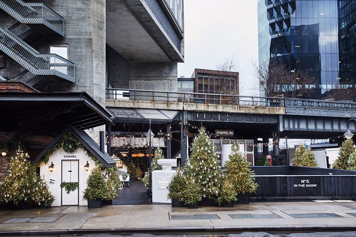 香奈兒在高線標(biāo)準(zhǔn)酒店舉行了其冬季快閃體驗(yàn)活動(dòng)“雪中的香奈兒5號(hào)”,活動(dòng)現(xiàn)場(chǎng)將酒店轉(zhuǎn)變成一個(gè)非常時(shí)尚的冬季仙境,現(xiàn)場(chǎng)設(shè)計(jì)得像別致的度假滑雪小屋,有很多樹(shù)、花環(huán)和閃爍的燈光,還有精心擺放的溜冰鞋和香奈兒品牌的滑雪板、雪鞋和雪橇。每年,該酒店都會(huì)在這個(gè)季節(jié)開(kāi)放其溜冰場(chǎng),因此來(lái)到現(xiàn)場(chǎng)的客人們還可以滑冰,參加香奈兒香水派對(duì)品嘗時(shí)令美食和熱巧克力。