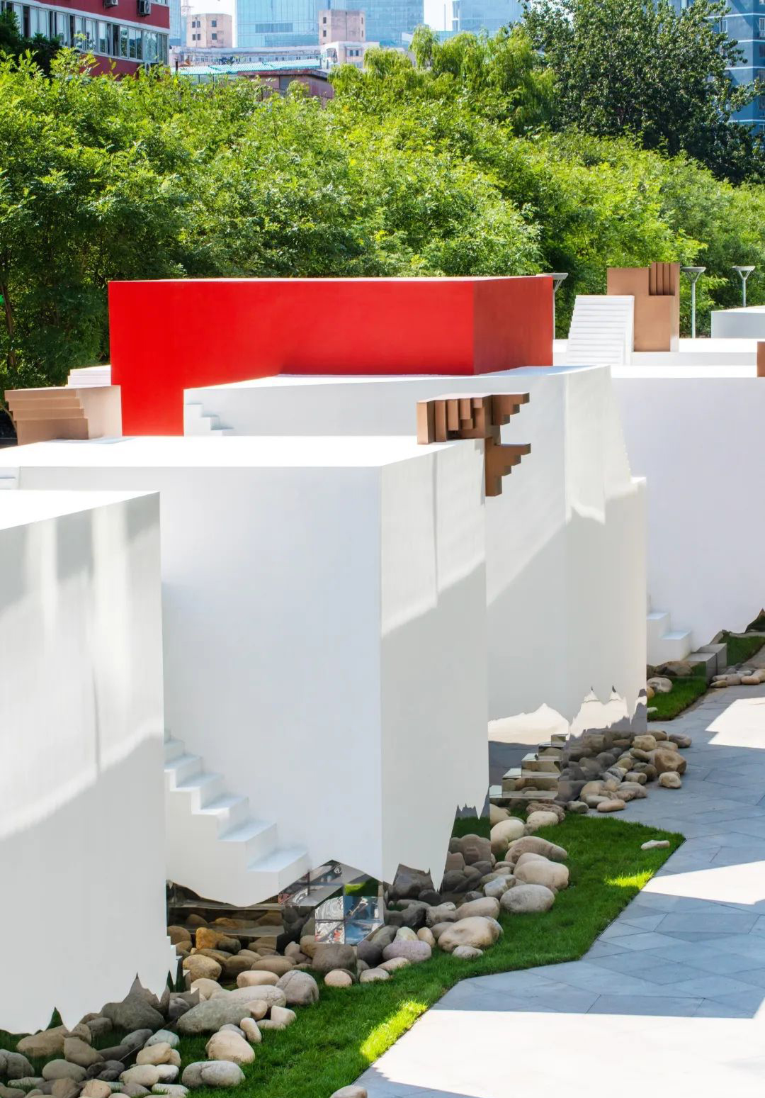 曼陀羅之丘,一個內(nèi)向的花園,懸浮于都市的理想城。作為快閃式的主題展覽建筑,曼陀羅之丘與內(nèi)部喜馬拉雅為主題的數(shù)字藝術(shù)展覽形成了從概念到形式多層面的呼應(yīng)與對照——這也正是曼陀羅之丘與傳統(tǒng)展覽建筑的最重要的不同之處,它只為一個固定的主題展覽服務(wù),從而帶給參觀者真正的沉浸式體驗,并創(chuàng)造人與人/人與空間的新關(guān)系。