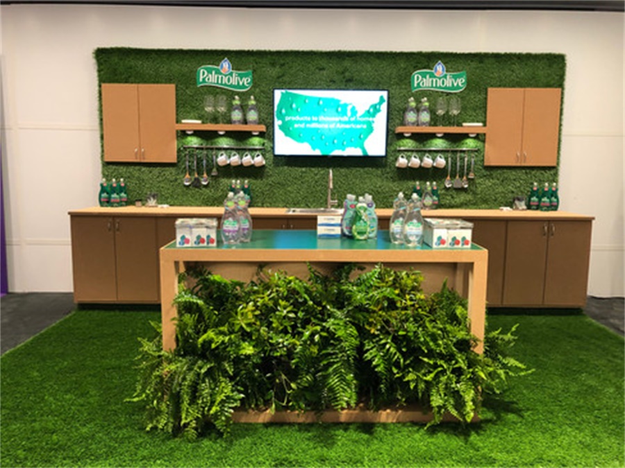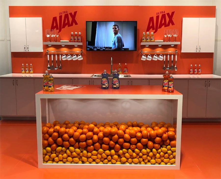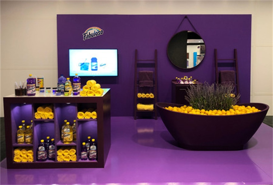 CDO是為高露潔棕欖銷售團隊舉辦的年度會議,其目的是培訓銷售人員了解熟悉所有的內(nèi)部品牌產(chǎn)品?;顒右谝粋€30×30米的空間內(nèi),將所有五個家居品牌(Palmolive、Ajax、 Suavitel、 Murphys和Fabuloso)融合在一起,并提供培訓互動。設(shè)計師使用了單色方案,每個品牌一種色彩,展示內(nèi)容包括產(chǎn)品展示、視頻集成、體現(xiàn)品牌精神的演示站,以及品牌大使表達品牌倡議的渠道。