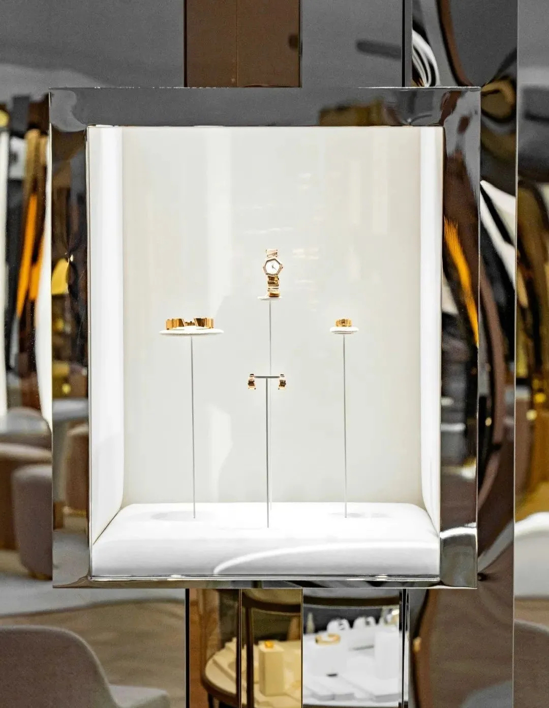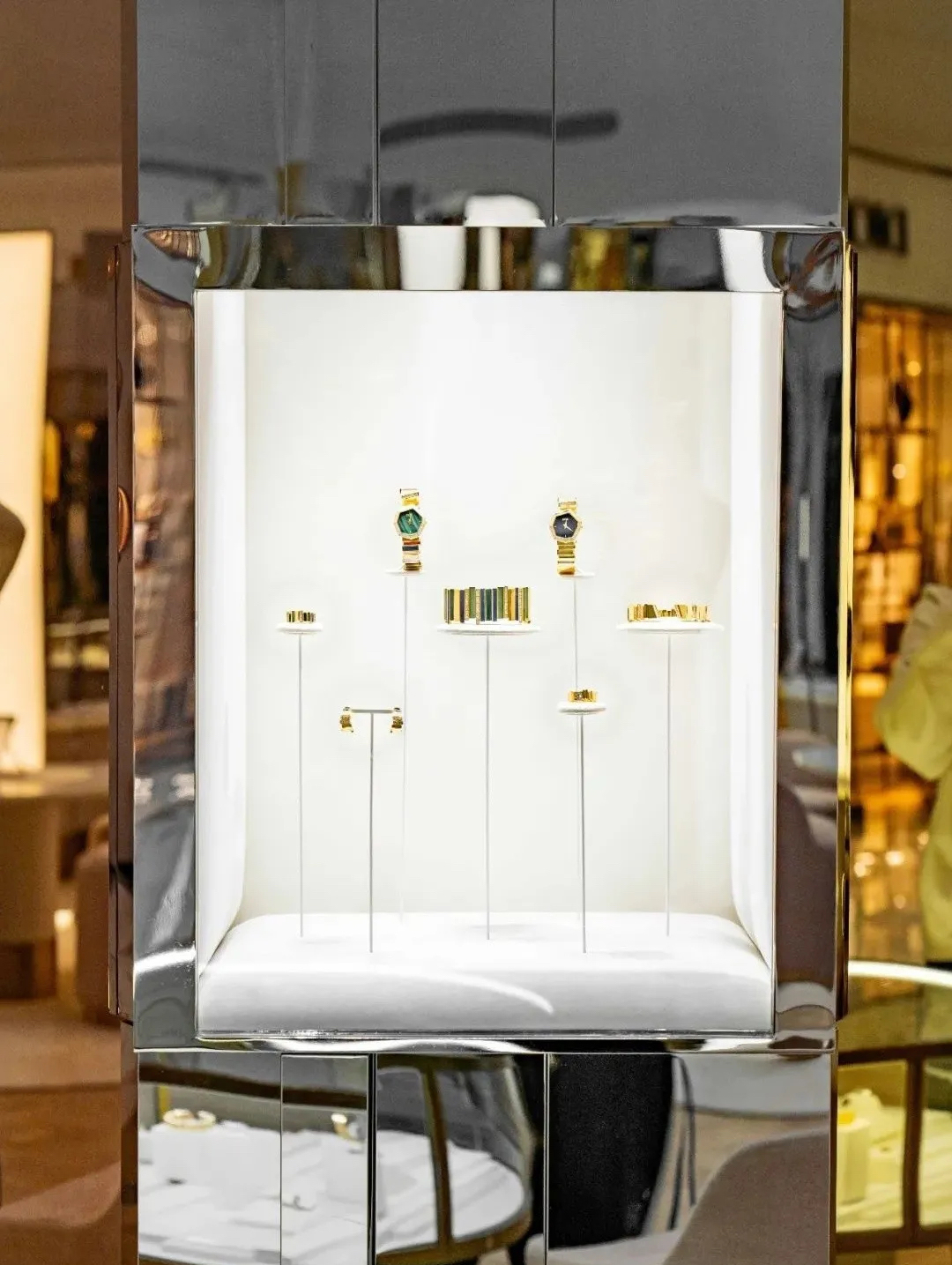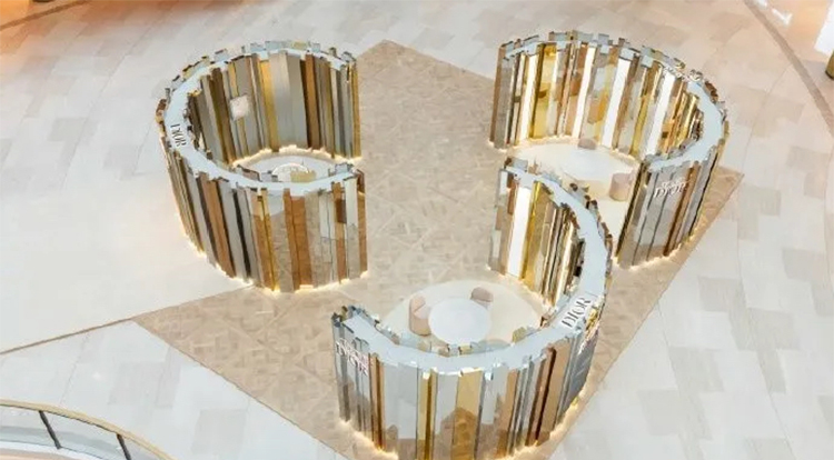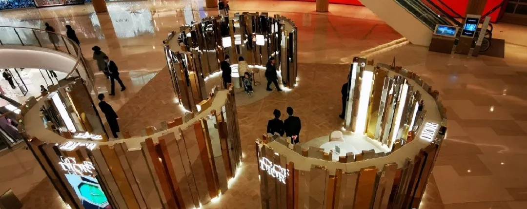 迪奧于上海恒隆廣場(chǎng)一層中庭舉辦GEM DIOR高級(jí)珠寶及腕表系列限時(shí)精品店開(kāi)幕酒會(huì),開(kāi)啟一場(chǎng)全新高級(jí)珠寶與腕表的探索之旅。上海恒隆廣場(chǎng)GEM DIOR限時(shí)精品店以連綴排列的三色鏡面不規(guī)則幾何造型呈現(xiàn),致敬全新GEM DIOR高級(jí)珠寶及腕表系列的獨(dú)特設(shè)計(jì)。白金、黃金與玫瑰金色光影交錯(cuò),烘托全新系列作品利落優(yōu)雅的摩登質(zhì)感,呈現(xiàn)其獨(dú)一無(wú)二的美學(xué)創(chuàng)意和精湛工藝。