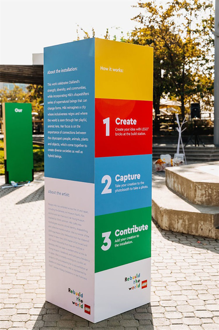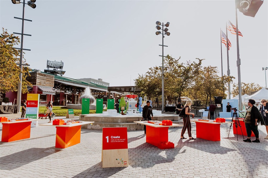 樂高?推出了一個(gè)“重建世界”的全球巡回活動(dòng),為了讓這個(gè)活動(dòng)概念對(duì)孩子和他們的家庭有意義,活動(dòng)組織了藝術(shù)家、城市藝術(shù)裝置和社區(qū)活動(dòng)與當(dāng)?shù)氐暮⒆优c家庭互動(dòng)。?在奧克蘭,與藝術(shù)家Masako Miki和社區(qū)合作,幫助孩子們?cè)O(shè)計(jì)了一個(gè)有趣的,充滿活力的城市。藝術(shù)家瑪格麗塔·卡布雷拉帶領(lǐng)休斯頓的孩子們重新想象他們與自然的聯(lián)系,并創(chuàng)建有趣的綠色空間。