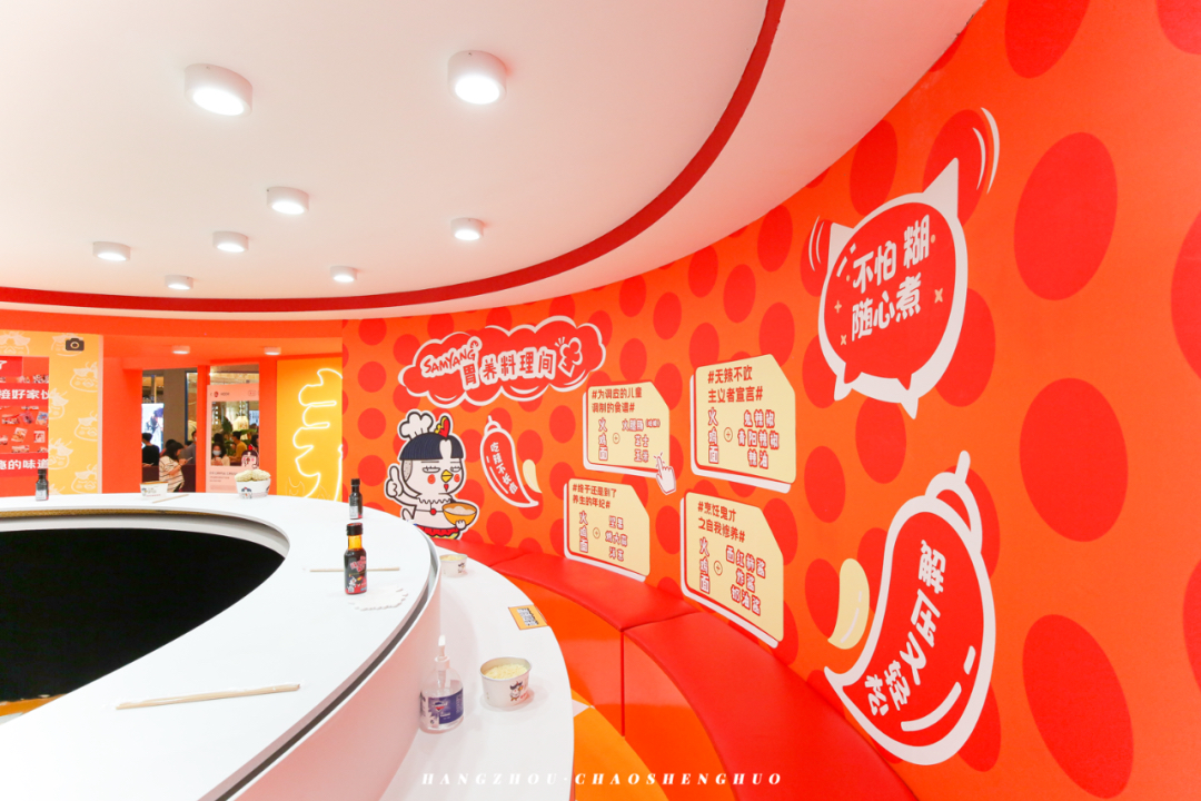 胃養(yǎng)料理店:三養(yǎng)養(yǎng)氣站怎么沒(méi)有養(yǎng)氣滿(mǎn)滿(mǎn)的火雞面呢!,專(zhuān)門(mén)內(nèi)設(shè)的環(huán)形吧臺(tái)可以肆意免費(fèi)品嘗!不過(guò)這火雞面的“養(yǎng)氣”不可謂不給力!根本不用擔(dān)心,生活枯燥“乏味”。三養(yǎng)當(dāng)然也是貼心的,精心準(zhǔn)備的火雞醬冰淇凌,讓你的嘴里的火辣不那么瘋狂!一旁火辣的彈幕墻也是不容錯(cuò)過(guò)的打卡點(diǎn),“我直接好家伙”、“這味道aswl!”、“鎮(zhèn)店之面”,到底哪一句是你的心聲呢!